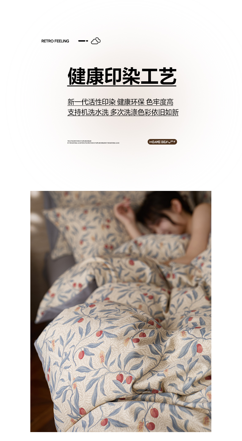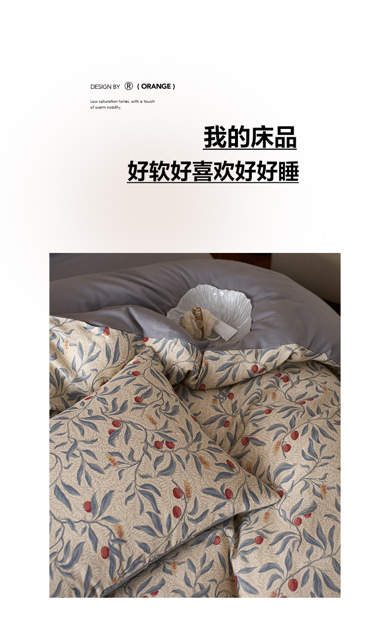 商品名称:如一 2026新款A类复古全棉棉麻印花四件套 硕果