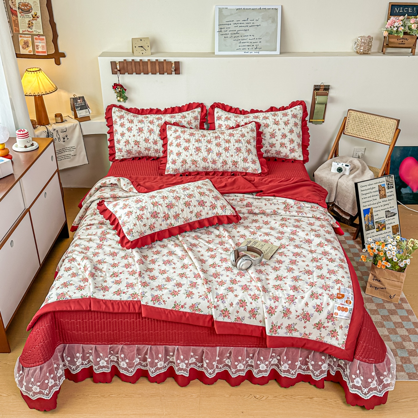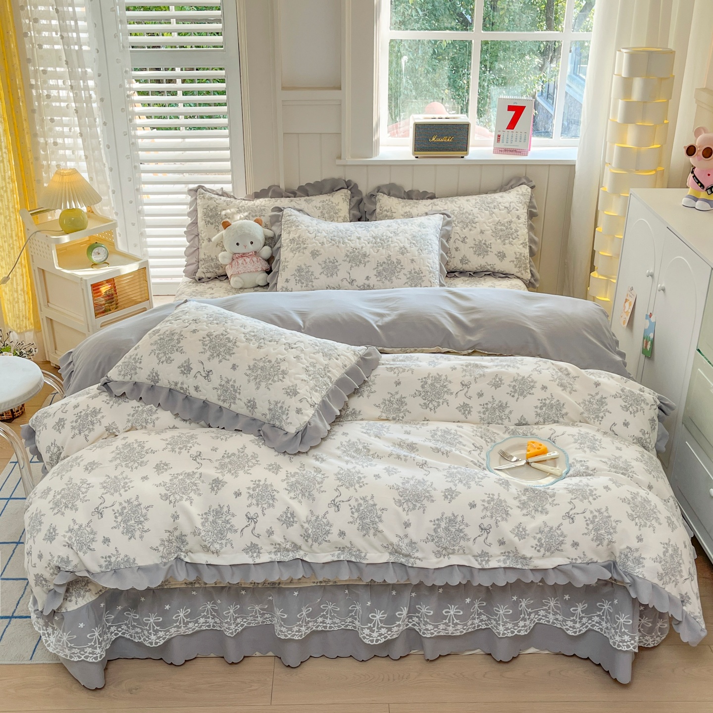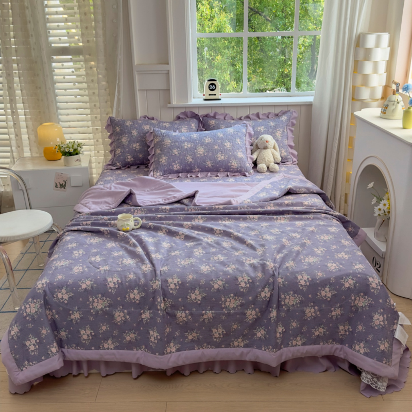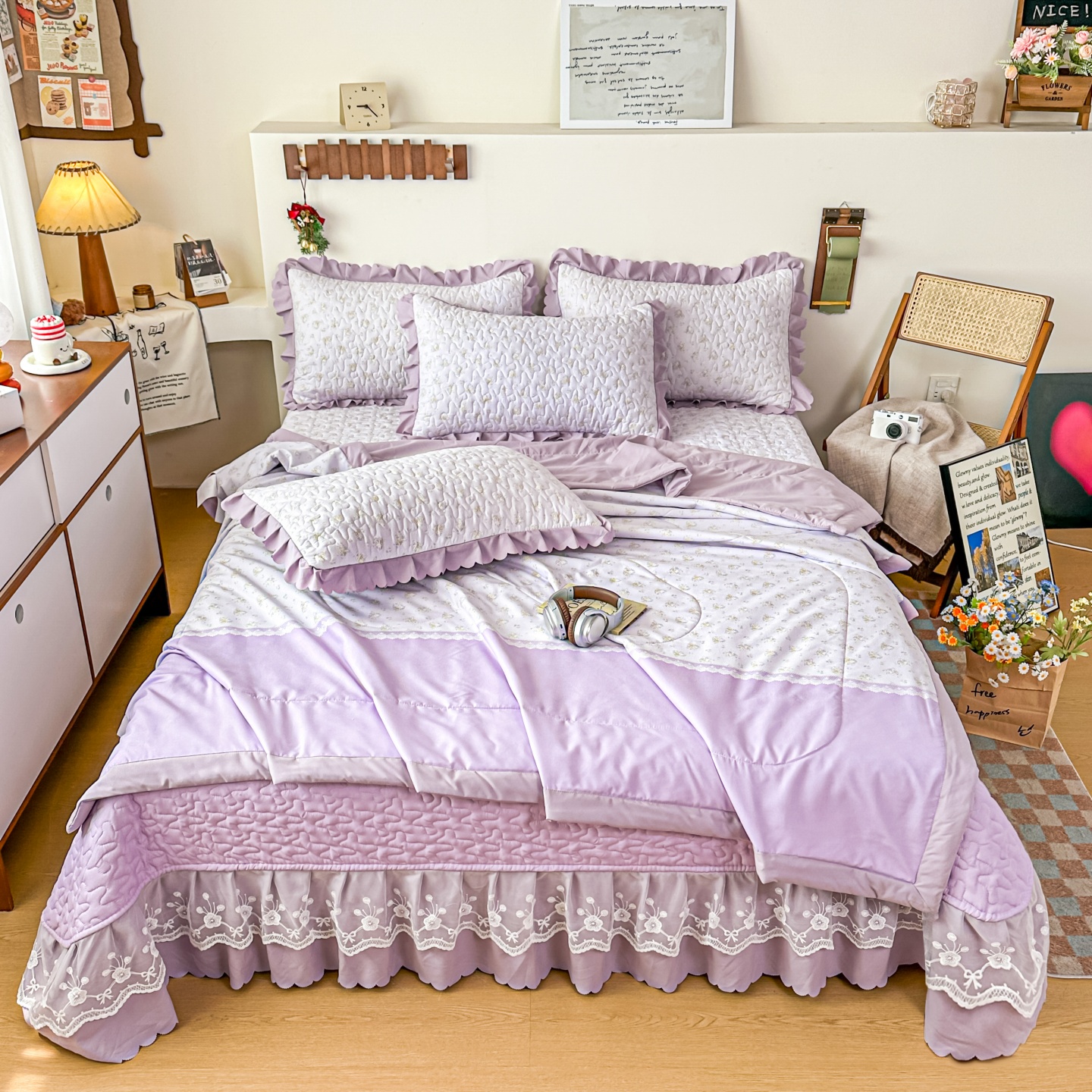 (总)雅眠居 2026直播爆款泡芙棉双层蕾丝花边床盖四件套,红色小马,莫奈花园,甜心-粉,甜心-灰,甜心-蓝,甜心-绿,甜心-紫,薰衣草,织梦时空