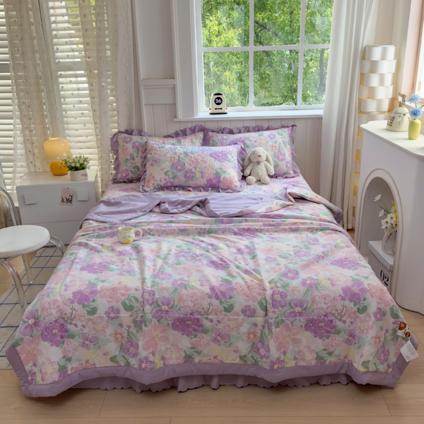 (总)雅眠居 2026直播爆款双层蕾丝花边夏被款床盖款四件套,彩格-粉,彩格-灰,彩格-蓝,彩格-绿,彩格-紫,豆蔻,蝴蝶印记,花满满,花语,灰韵,秘境-灰,秘境-绿,秘境-紫,奶油波点,诗意,十里桃花,夏花,小福星,小时光,胭花集,紫萱