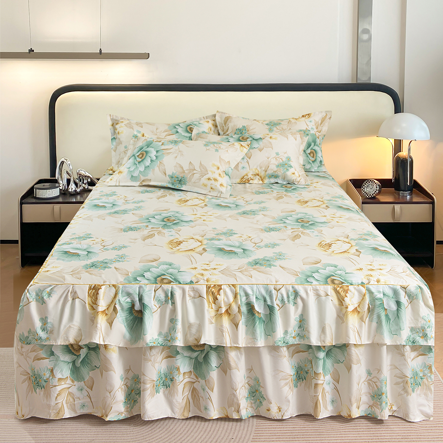 • 91家纺网 家纺一手货源 找家纺 小雨家纺 2026年跨境电商芦荟棉床裙床罩三件套单品 浅夏繁花