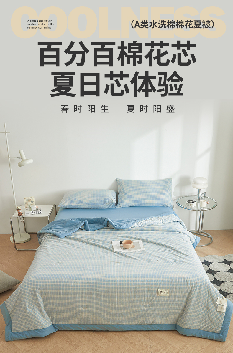 (总)晓时候 2026新款无印风100%新疆棉花被全棉夏被纯棉夏凉被空调被夏季被子被芯,布丁蓝,可可灰,里约蓝,里约绿,马卡龙,米亚蓝,蜜粉格,莫奈蓝,莫妮蓝,青柠绿,森蓝格,绅灰格,条纹灰,炫彩粉