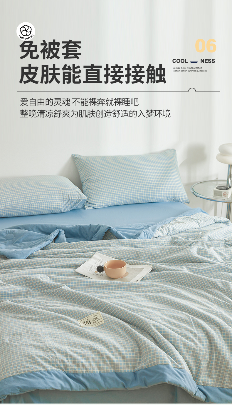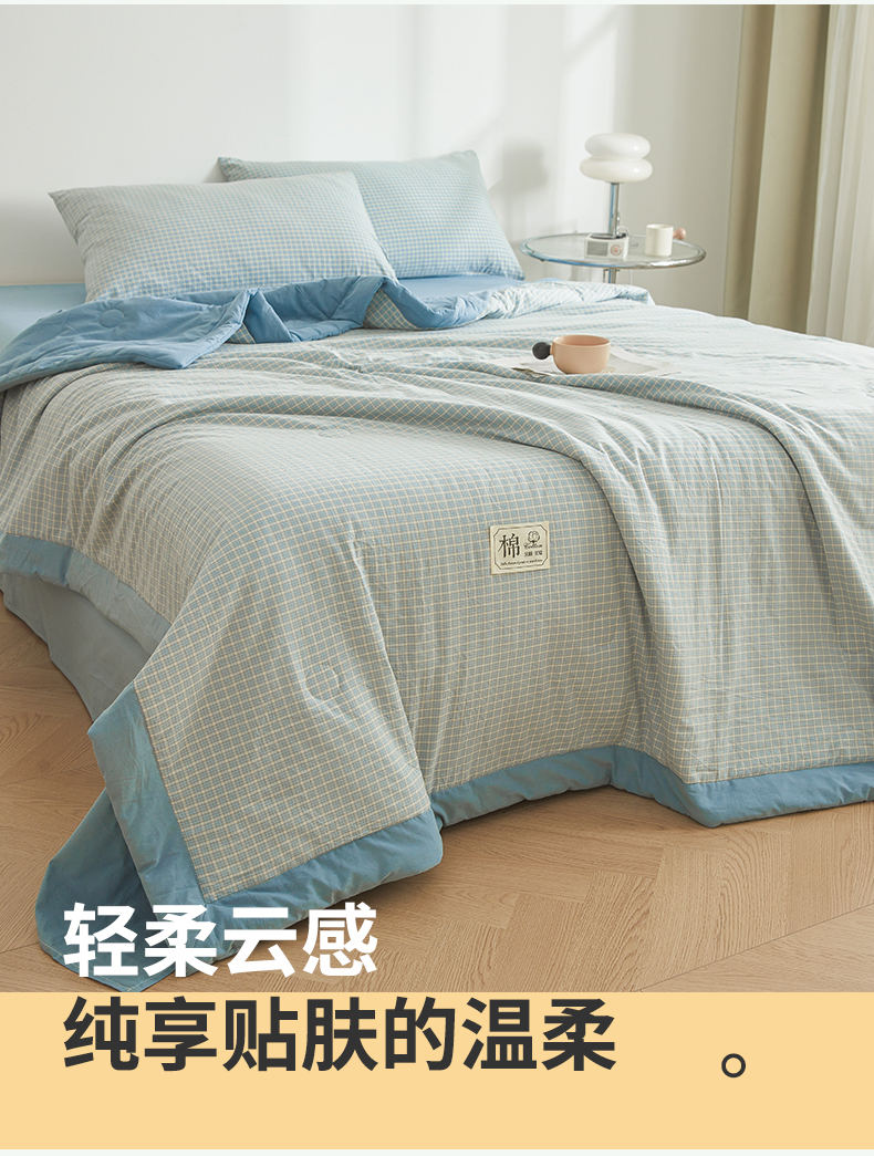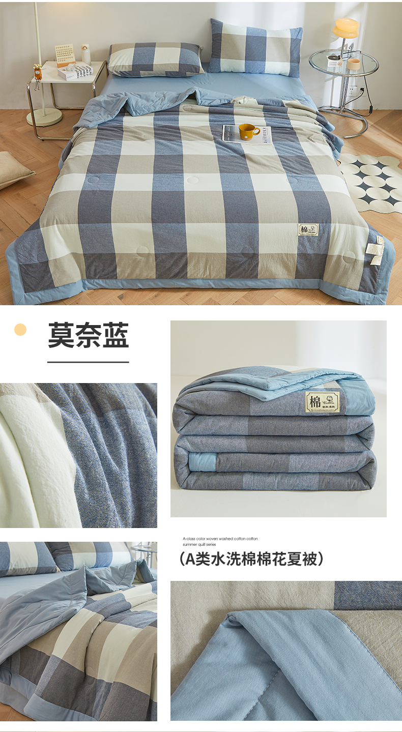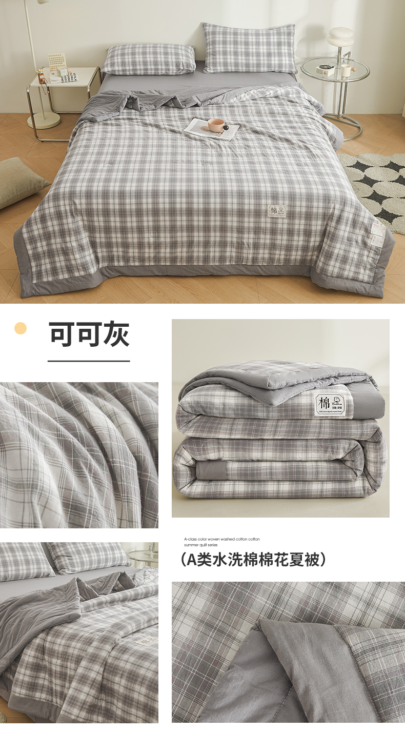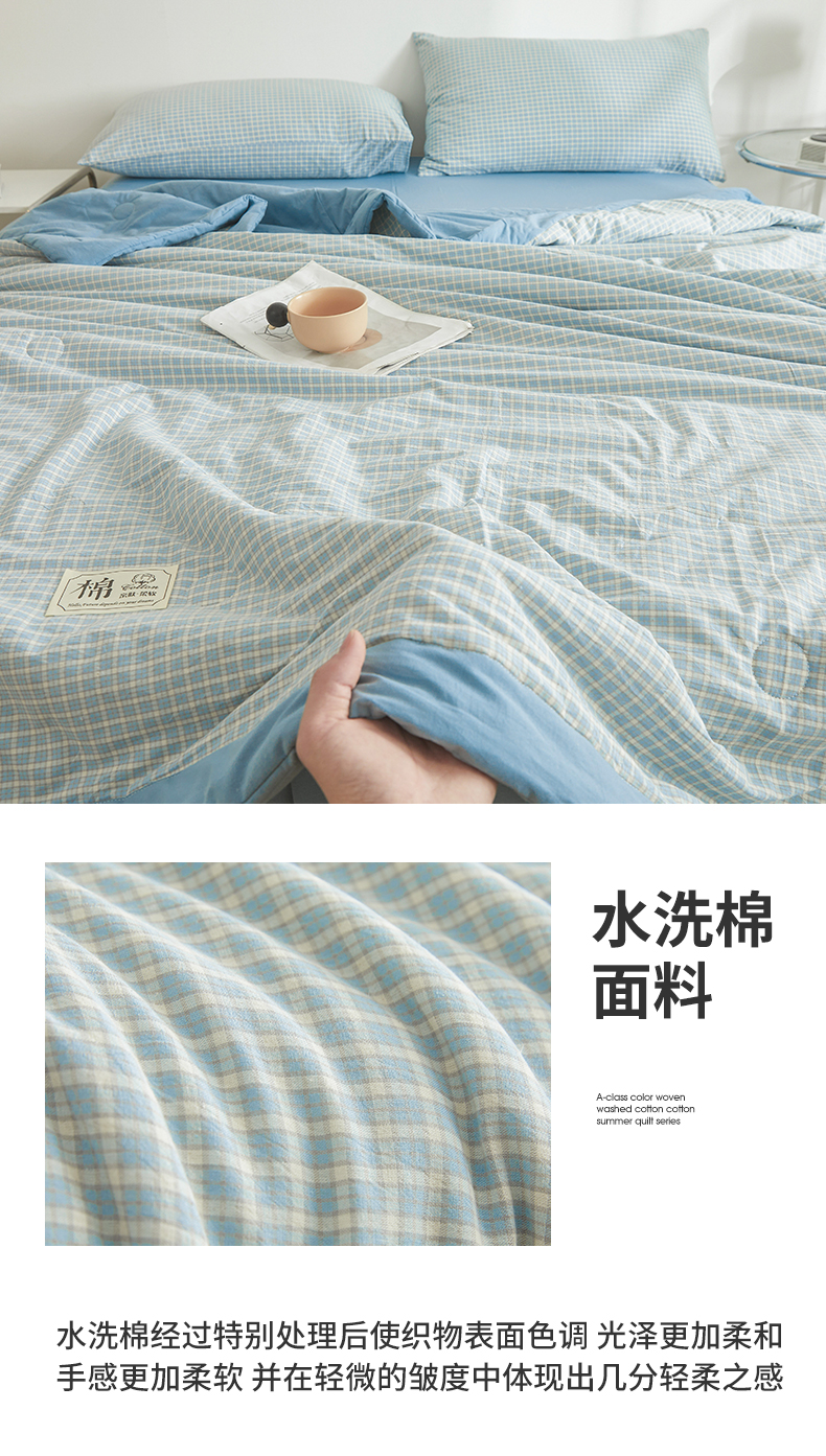 (总)晓时候 2026新款全棉色织水洗棉棉花夏被夏凉被空调被,巴宝莉格,粉大格,粉小格,海蓝大格,黄小格,灰细条,灰中格,简兮蓝,蓝灰大格,蓝条纹,蓝小格,洛卡灰,绿咖大格,莫尼蓝,星空桔,云舒粉