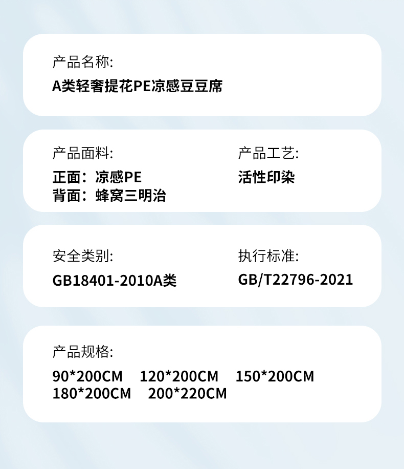 商品名称:(总)品乐家纺 2026新款A类乙伦PE轻奢提花学生宿舍软席凉豆豆床笠席