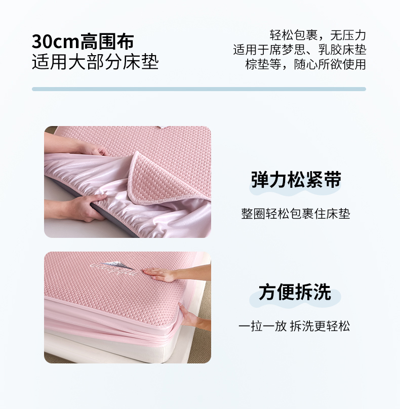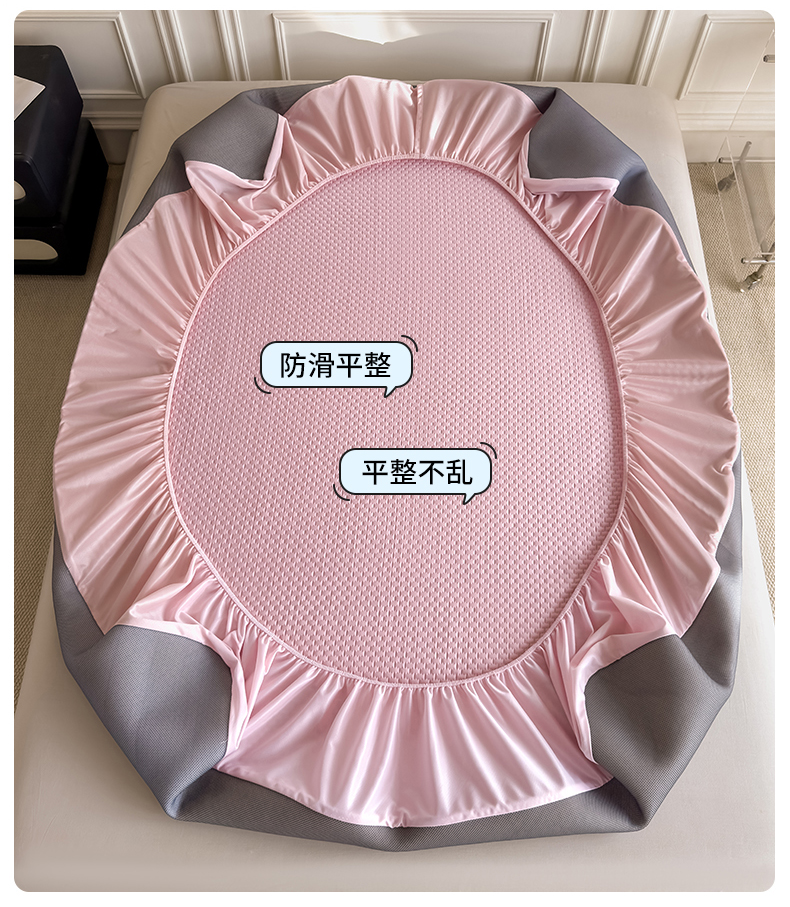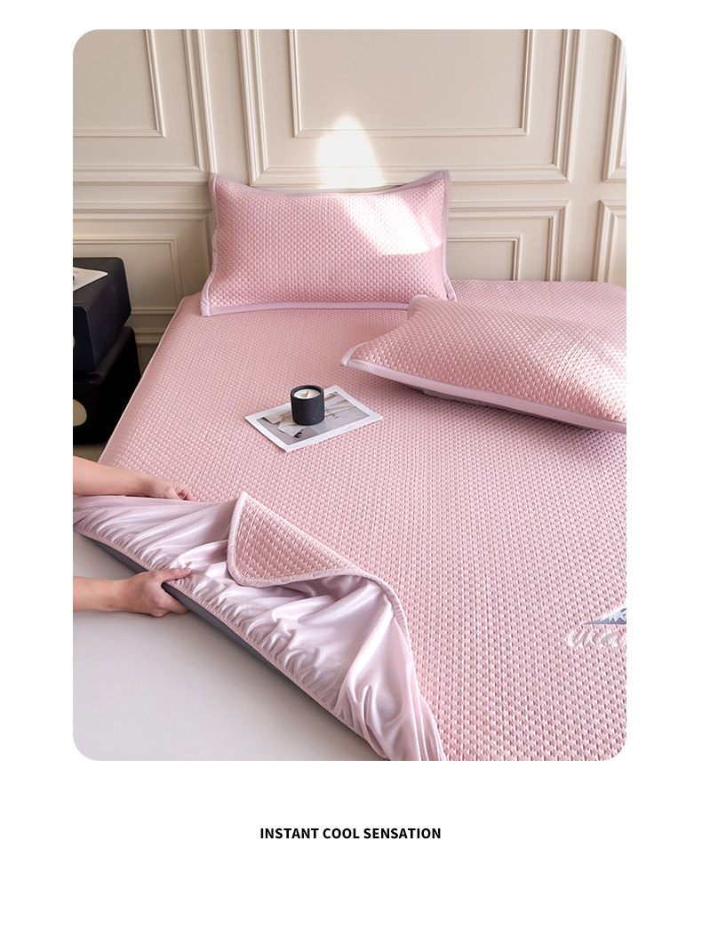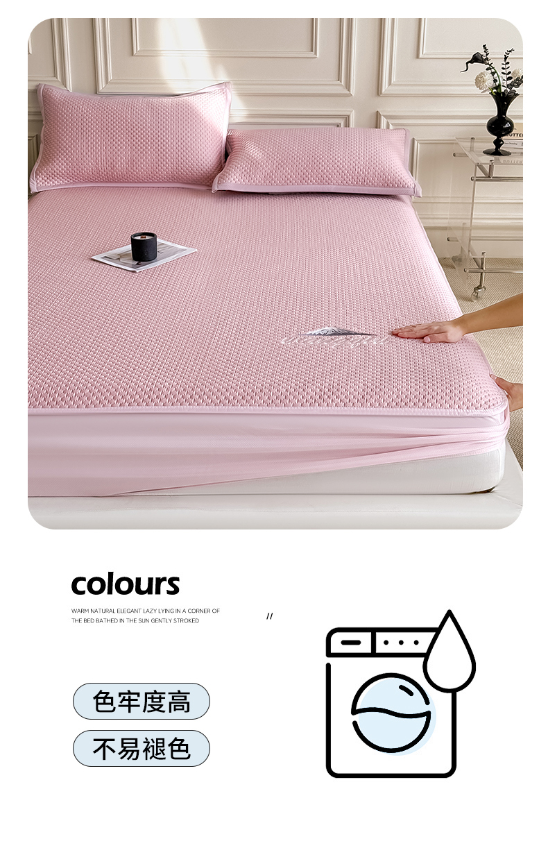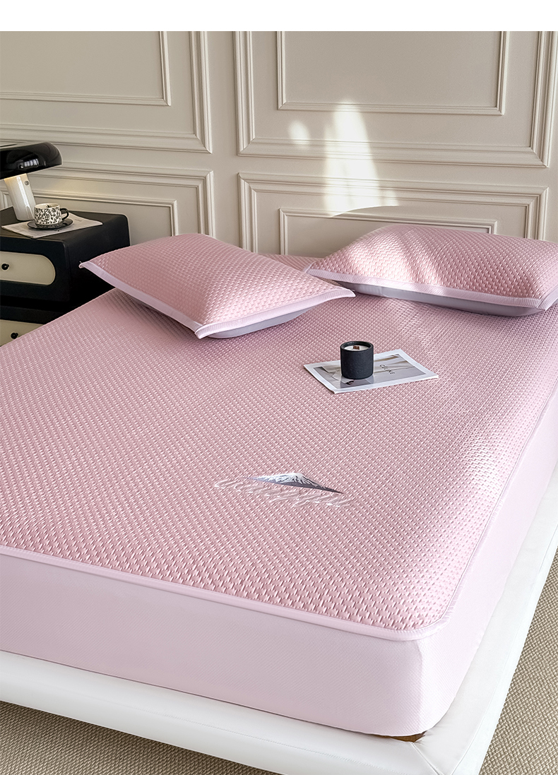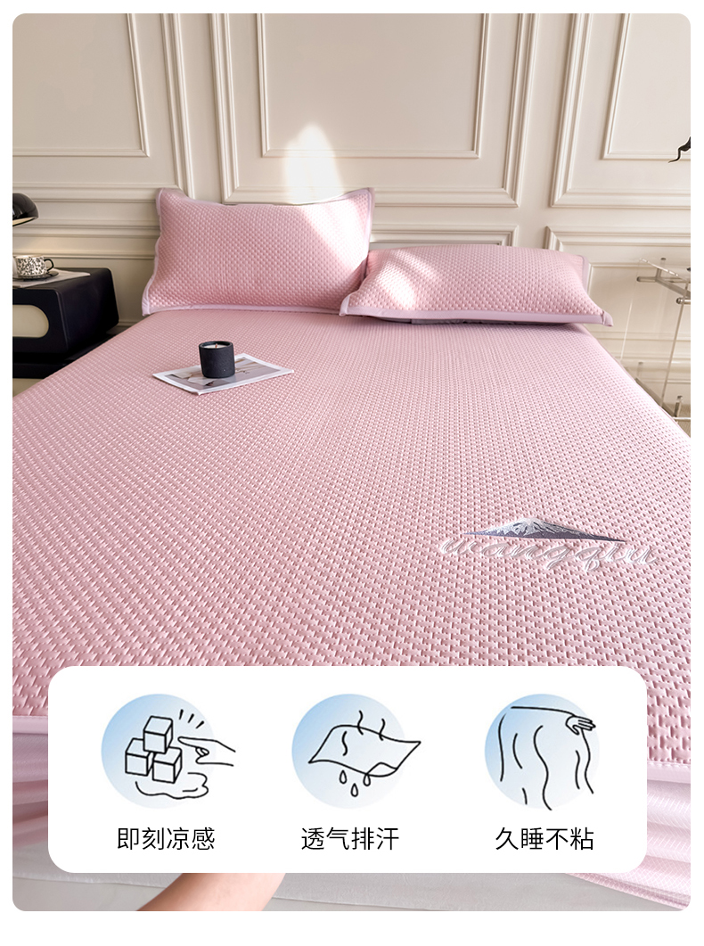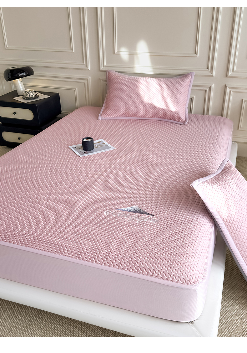 (总)品乐家纺 2026新款床裙款提花冰豆豆套件凉席席子,粉色,灰色,蓝色,绿色,浅驼,浅紫