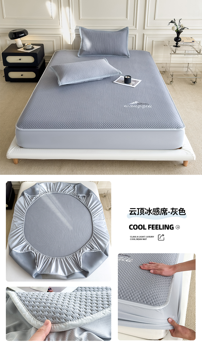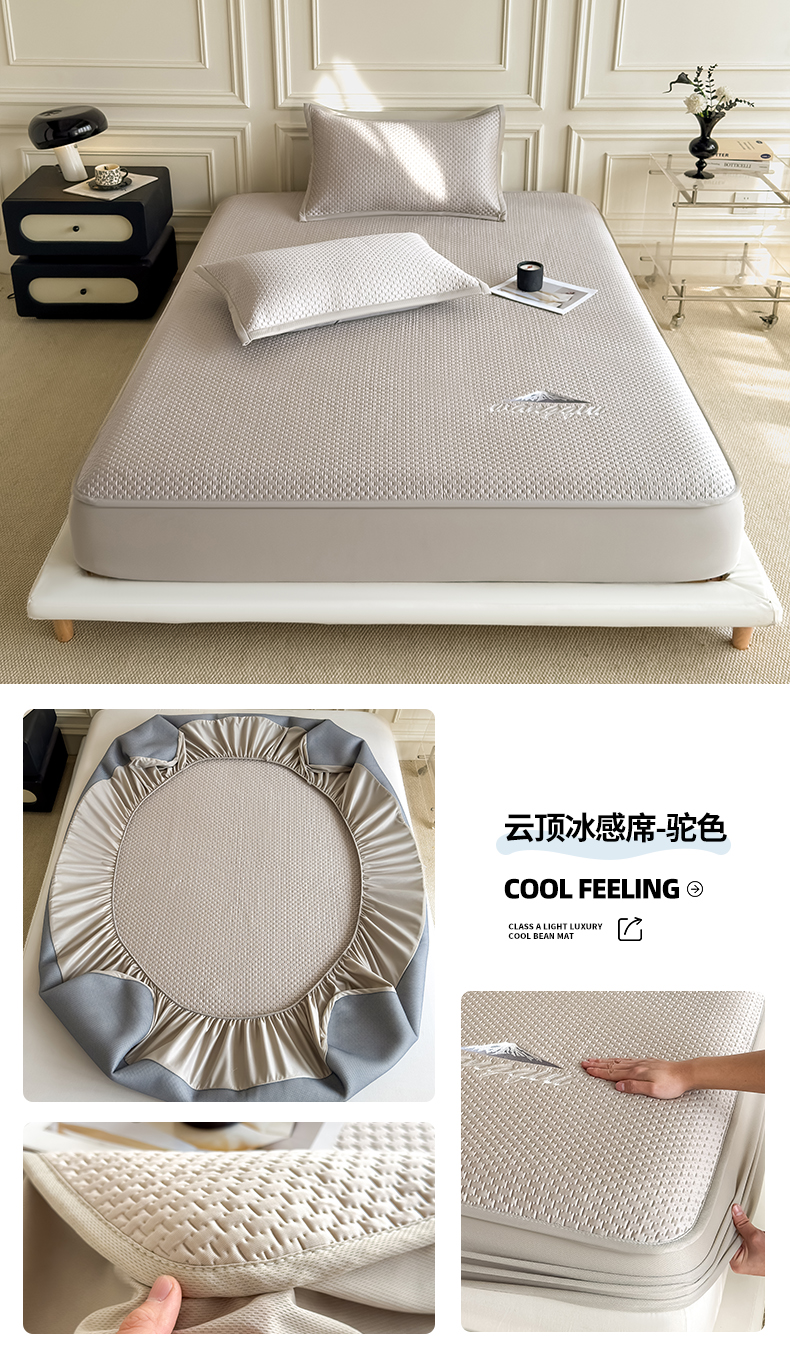 (总)品乐家纺 2026新款A类乙伦PE轻奢提花学生宿舍软席凉豆豆床单席,云顶冰感席-粉色,云顶冰感席-灰色,云顶冰感席-抹绿,云顶冰感席-天兰,云顶冰感席-驼色