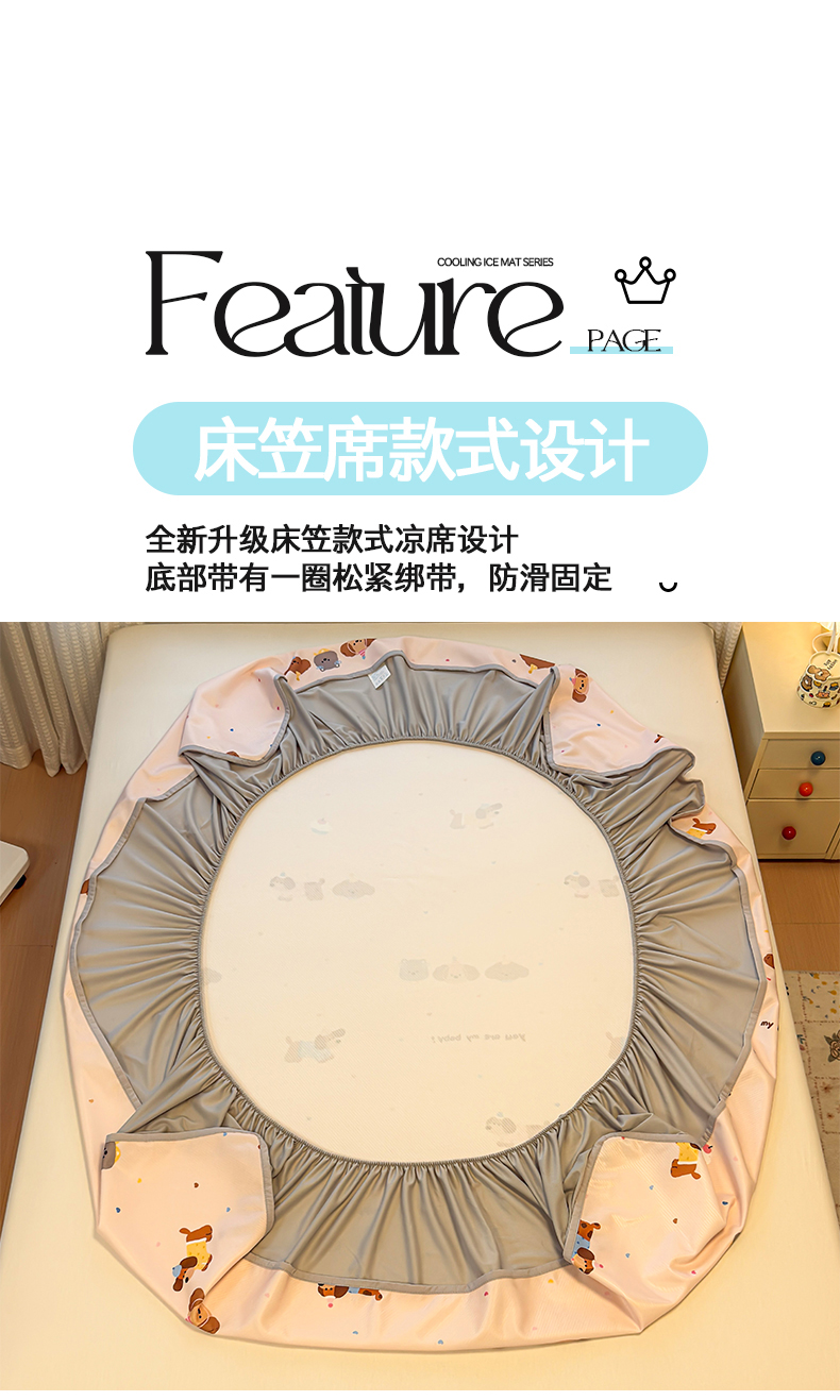 商品名称:懒猫家纺 2026新款卡通凉感冰丝床笠款凉席 床笠席-彩格萌宠