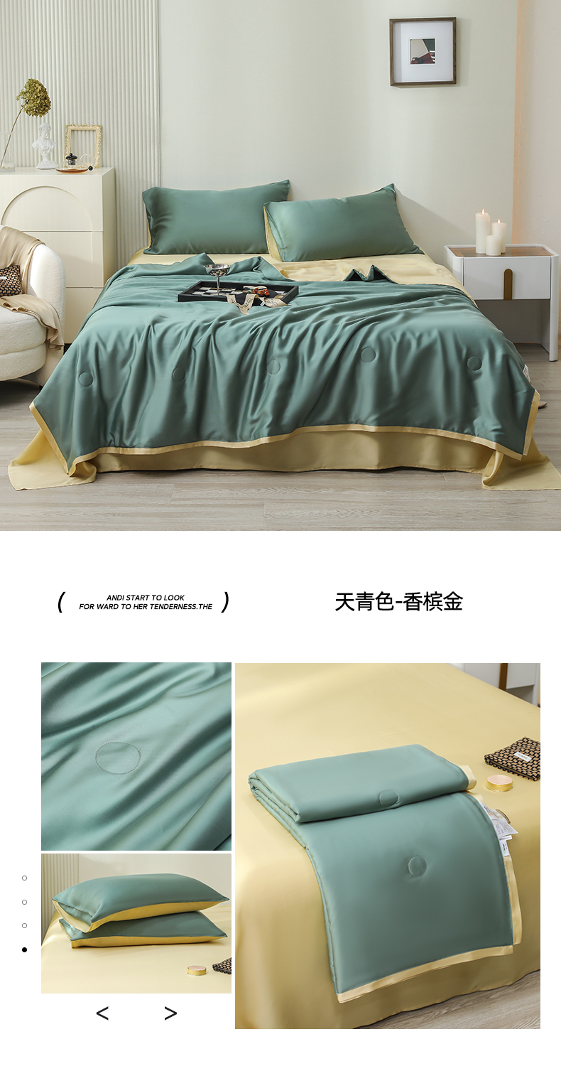 • 91家纺网 家纺一手货源 找家纺 禾时 2026新款奥地利进口兰精天丝夏被夏凉被空调被四件套 天青色-香槟金