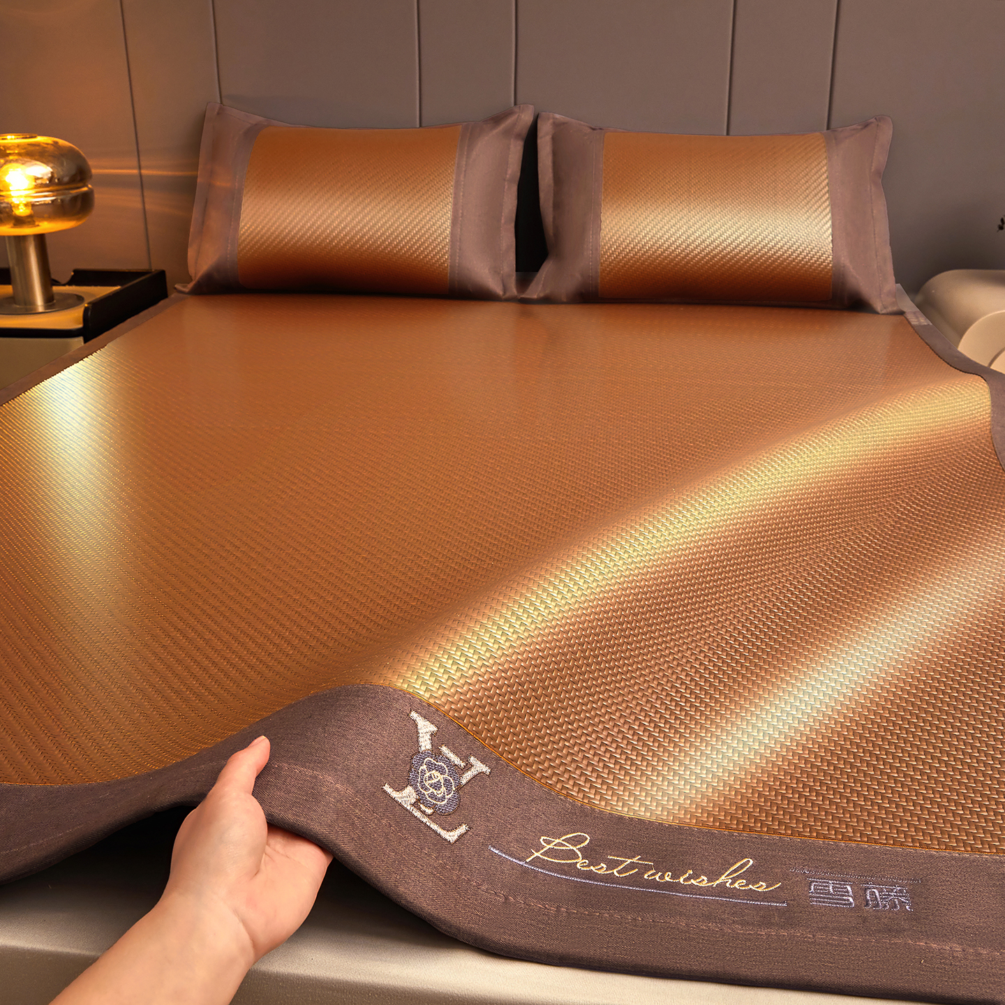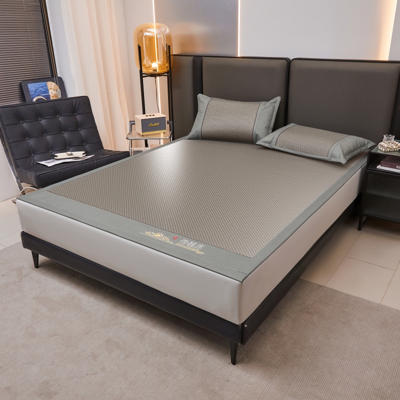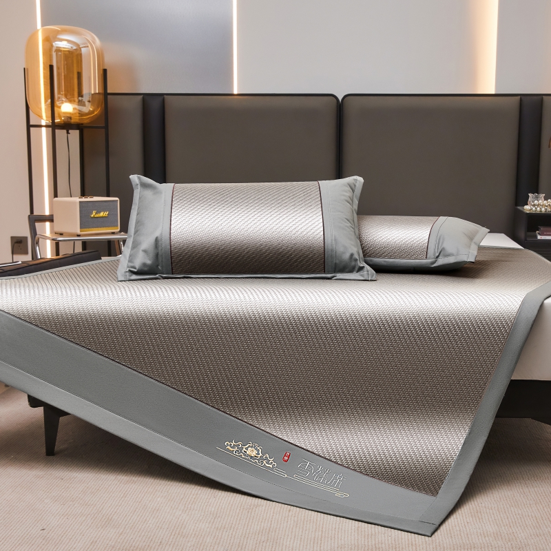 (总)尚品凤凰 2025新款小米花冰藤凉席,灰色,金色,绿色