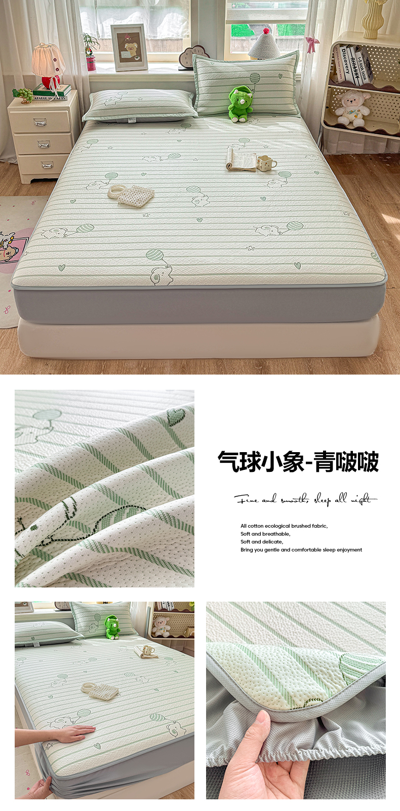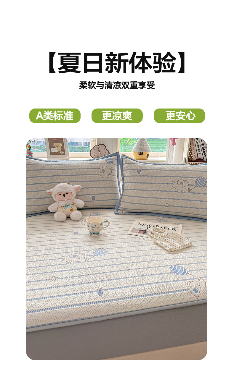 当前位置: 91家纺网 > 商品网购 > 床上用品 > 凉席 > 其他凉席 > 源舍家纺 2026新款A类PE卡通凉席三件套小红书爆款可水洗空调软席凉感值超0.25-床笠 气球小象-蓝啵啵床笠款