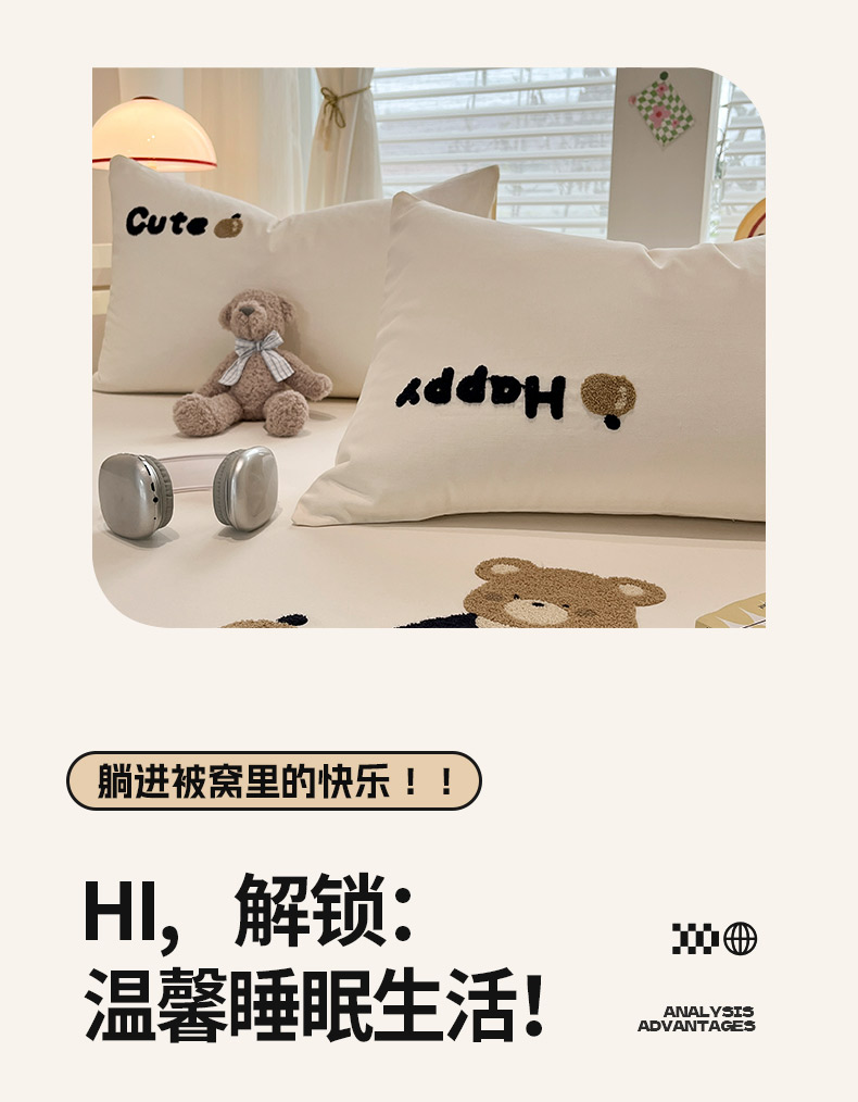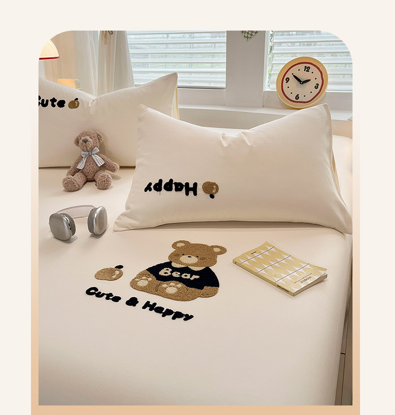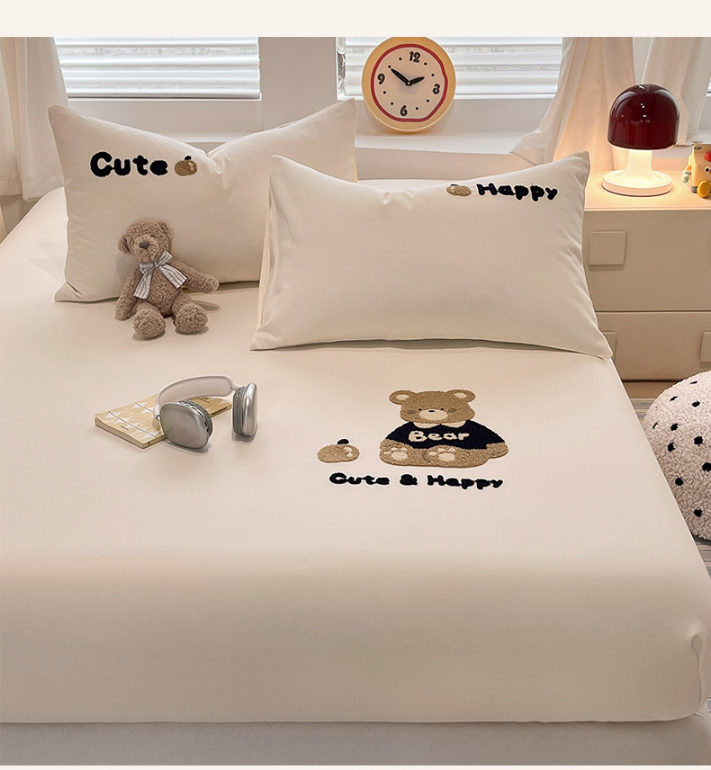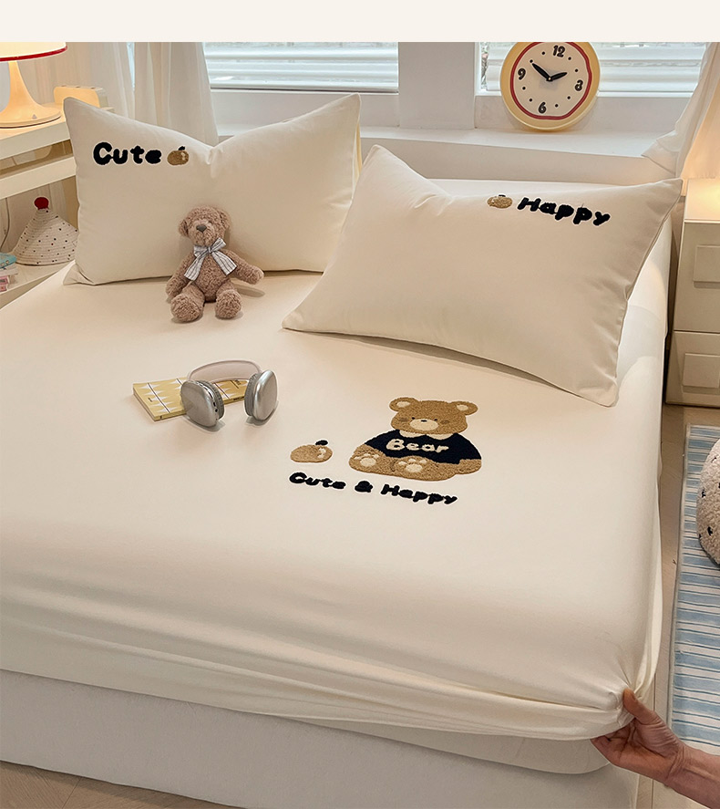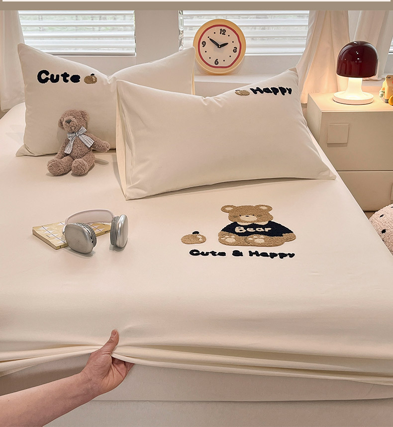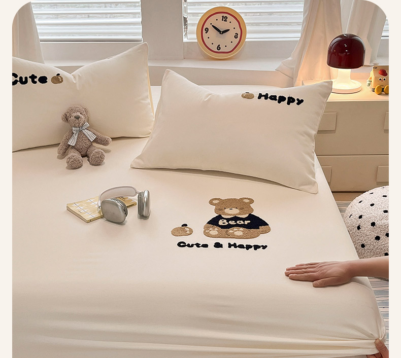 商品名称:其奥家纺 2026春夏新款纯棉全棉老粗布床笠纯色凉席 奇迹熊-浅米