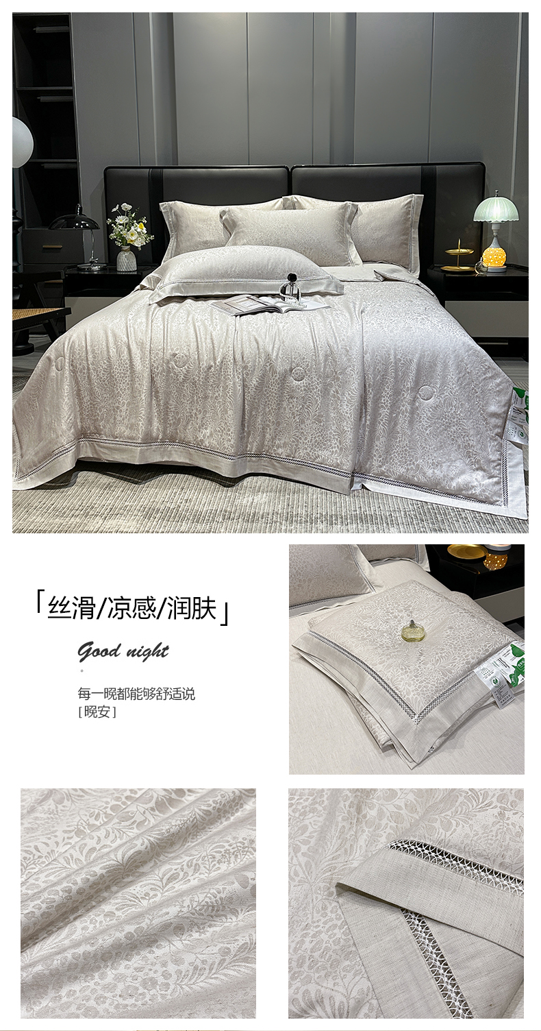 商品名称:欧夏家纺 2026新款莱赛尔天丝雅麻大提花镂空夏被空调被夏凉被夏季薄被子直播供货外贸 优雅玉