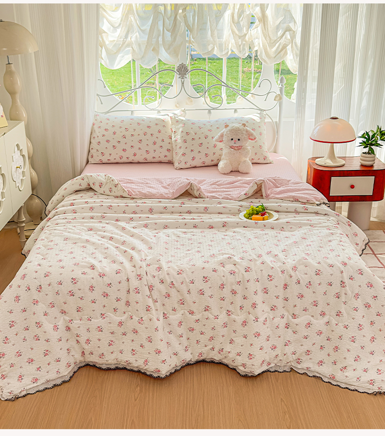 商品名称:眠势力 2026新款泡芙纱夏被四件套全棉花边空调被夏凉被薄被子 飞飞马