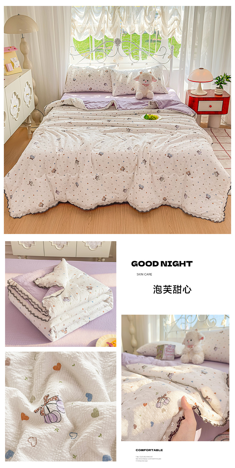 (总)眠势力 2026新款泡芙纱夏被四件套全棉花边空调被夏凉被薄被子,彩色爱心,蝶语,飞飞马,红果,美莓果,泡芙甜心,曲奇小熊,兔小妹,汪汪队,星星人,遇见花开