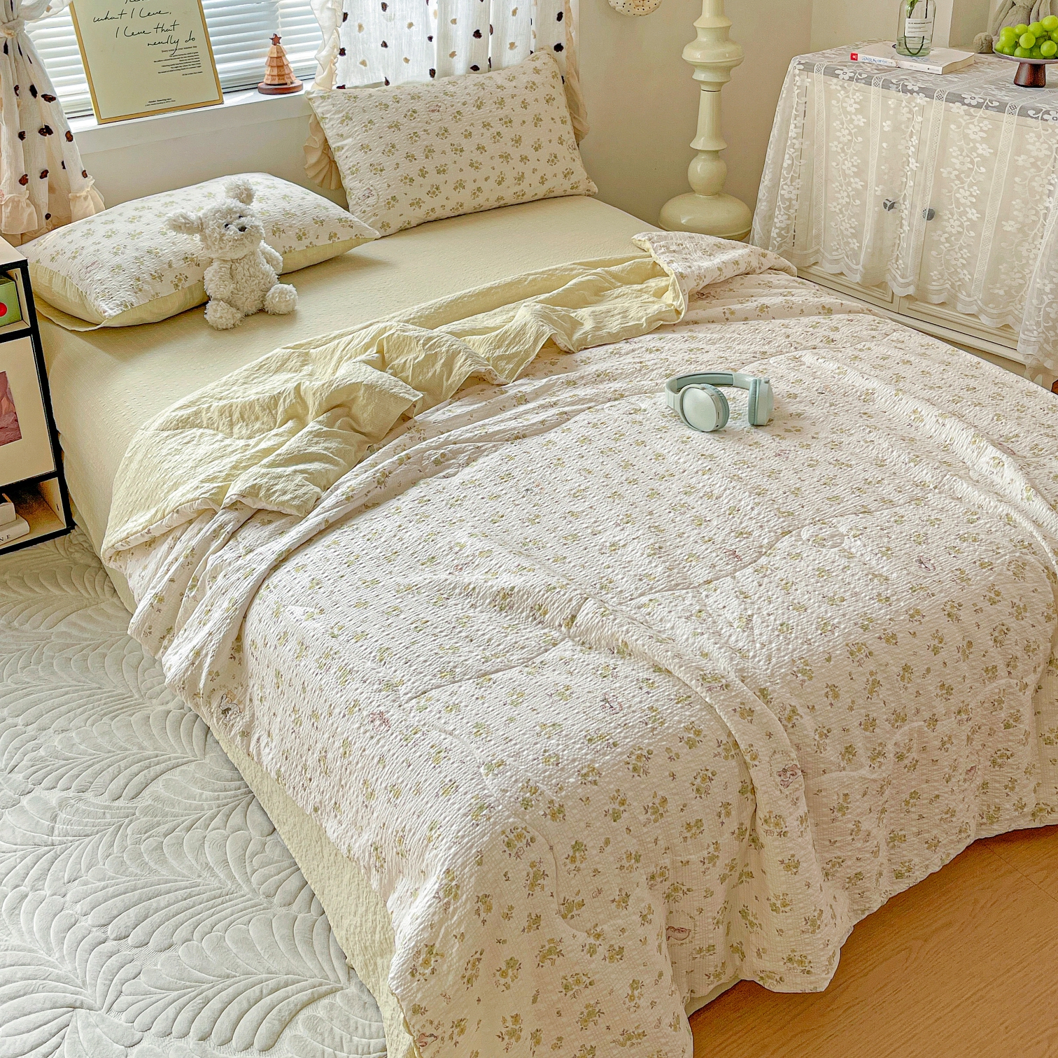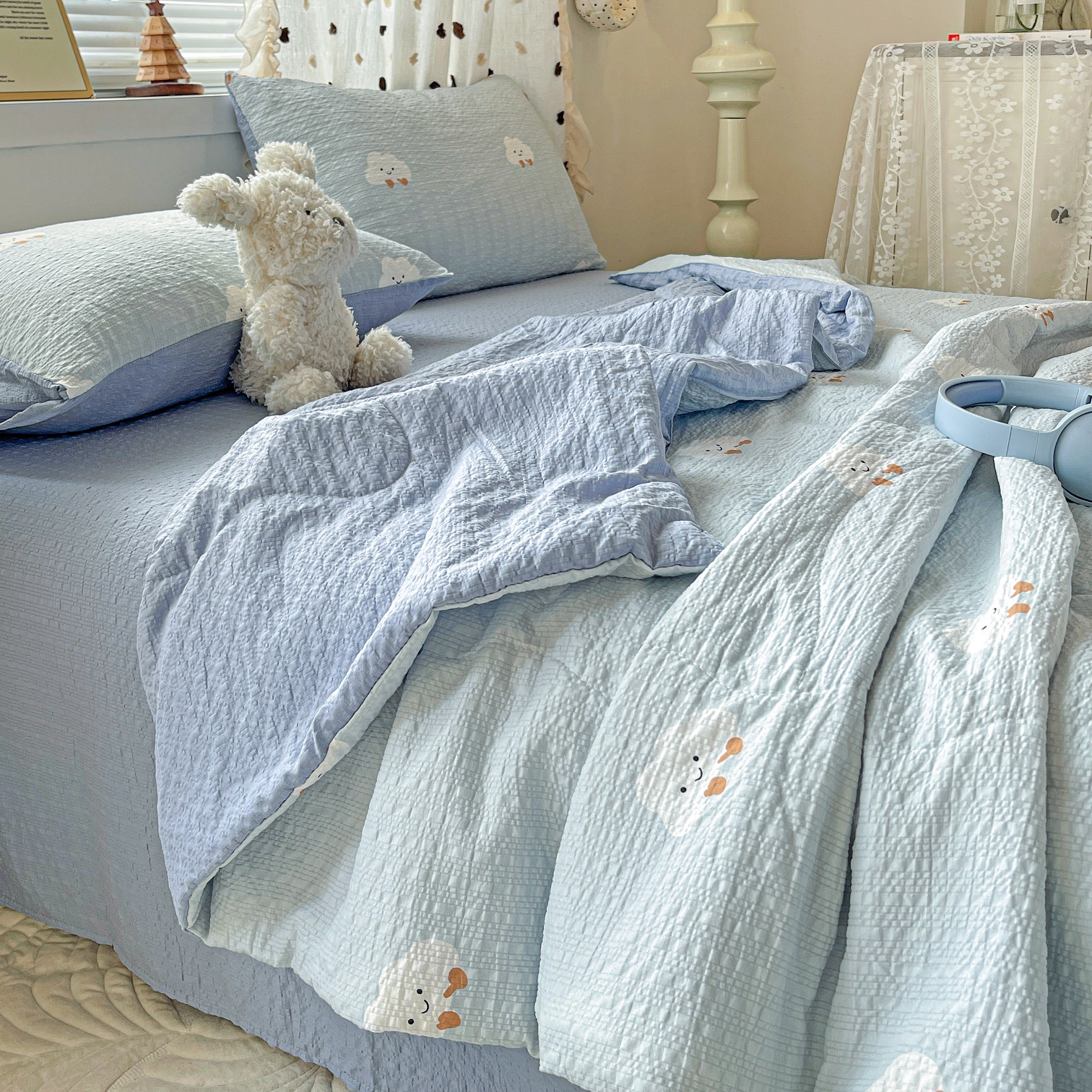 (总)一比一家纺 2026新款泡芙纱简款夏被四件套,安妮,草莓恋语,春日小兔,花藤小兔,咖啡狗,浪漫彩蝶,玫瑰之恋,素锦,小黄鸭,心愿,星梦乐园,星星狗,熊博士,摇摇星人,樱桃波点,云朵泡芙,长耳兔,紫色花语,组合图仅供展示-不可下单