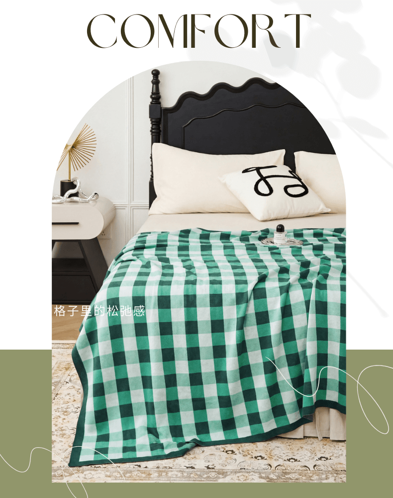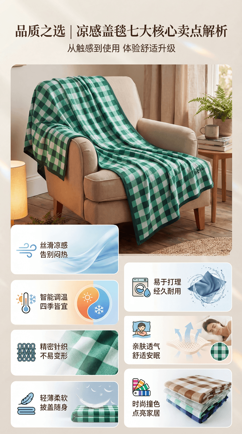 (总)暖绵绵家纺 2026新款丝光棉格子盖毯-艾利欧,咖色,蓝色,绿色,麻灰,组合图