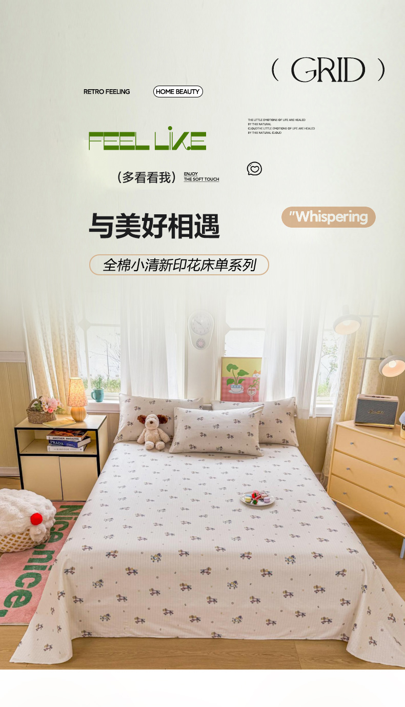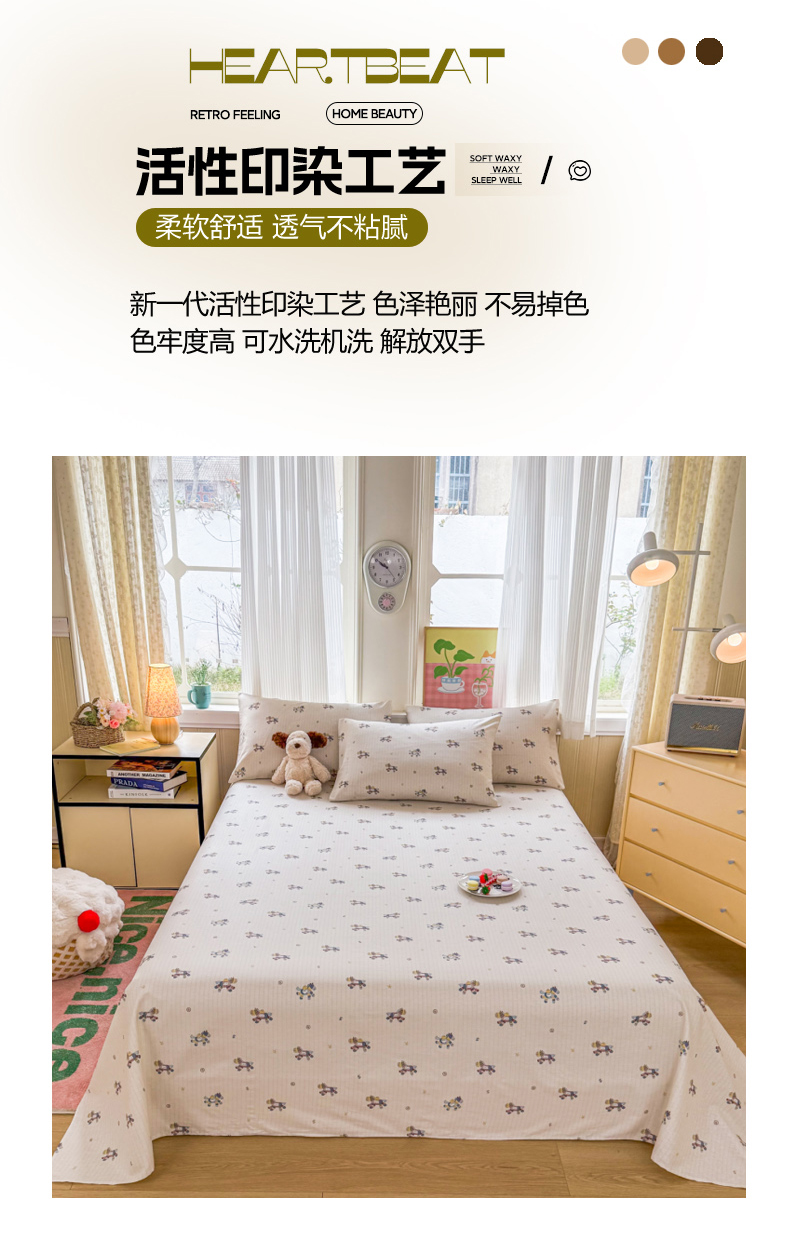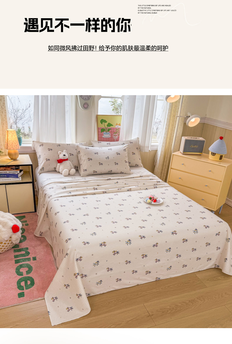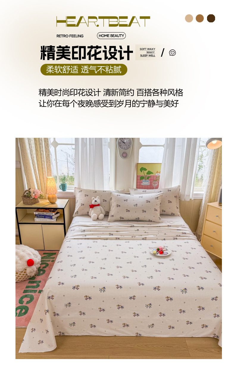 当前位置: 91家纺网 > 商品网购 > 床品套件 > 三件套 > 晨晨家纺 2026春夏新款小清新全棉纯棉印花床单三件套 马上有钱