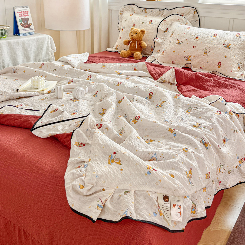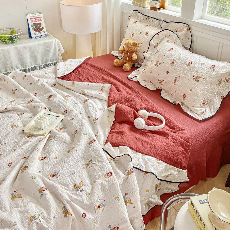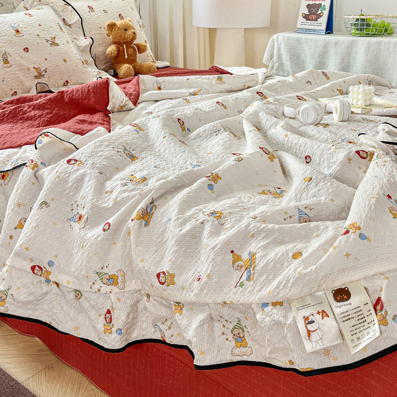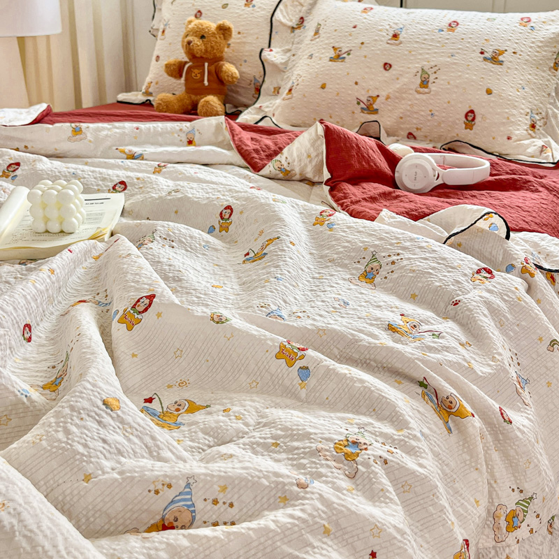 (总)2026春夏新款拼色提花双层纱古法水洗床盖四件套提花云感棉,啵啵熊,春暖花开,春暖花开粉,蝶梦成真,花开富贵,浪漫主义蓝,浪漫主义紫,蘑菇力,南瓜派灰,南瓜派咖,雅韵,雅韵紫