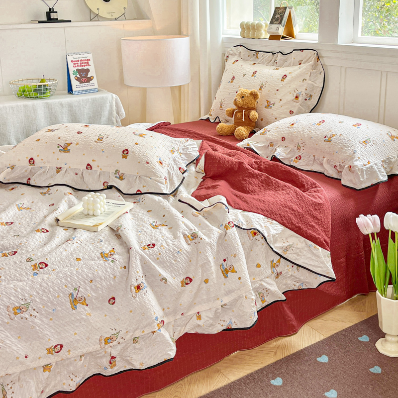 利禾家纺 2026新款法式花边泡芙纱夏被四件套 星星人
