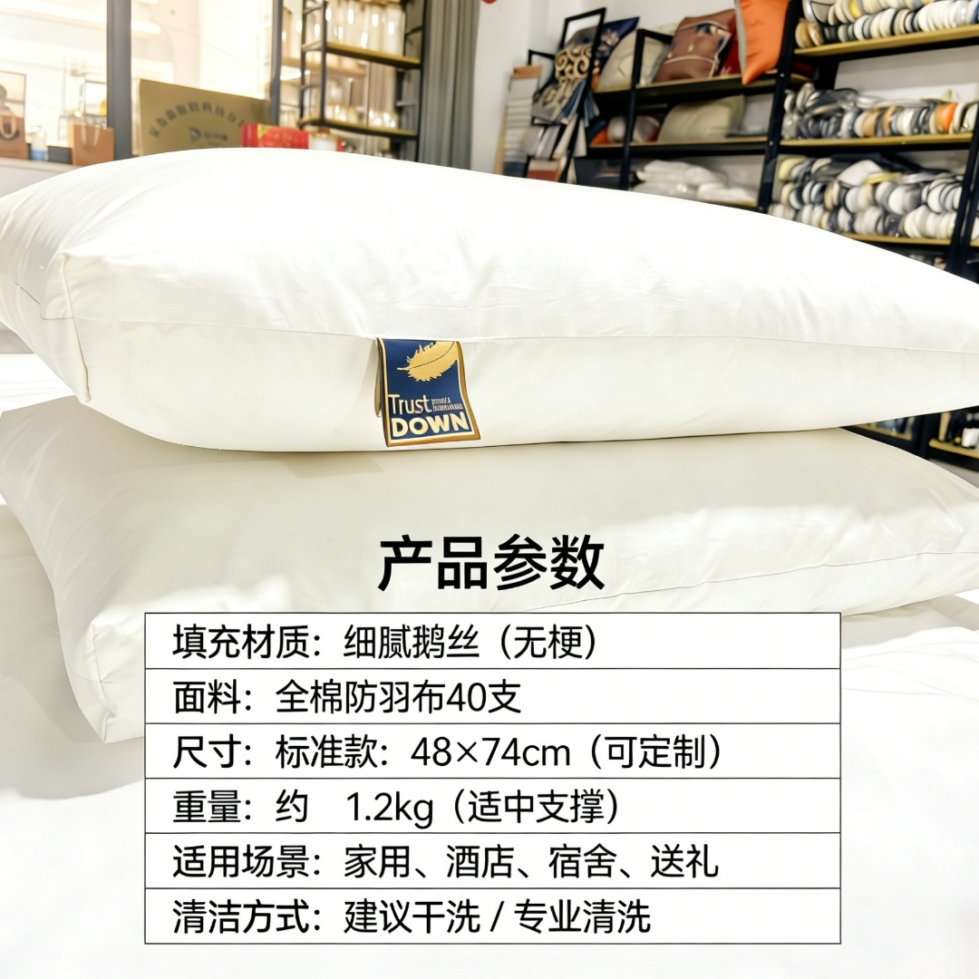 商品名称:(总)安力森/诚臻酒店用品 2026新款星级酒店鹅丝枕芯护颈枕头成人单人不扎头无异味高回弹家用助眠枕