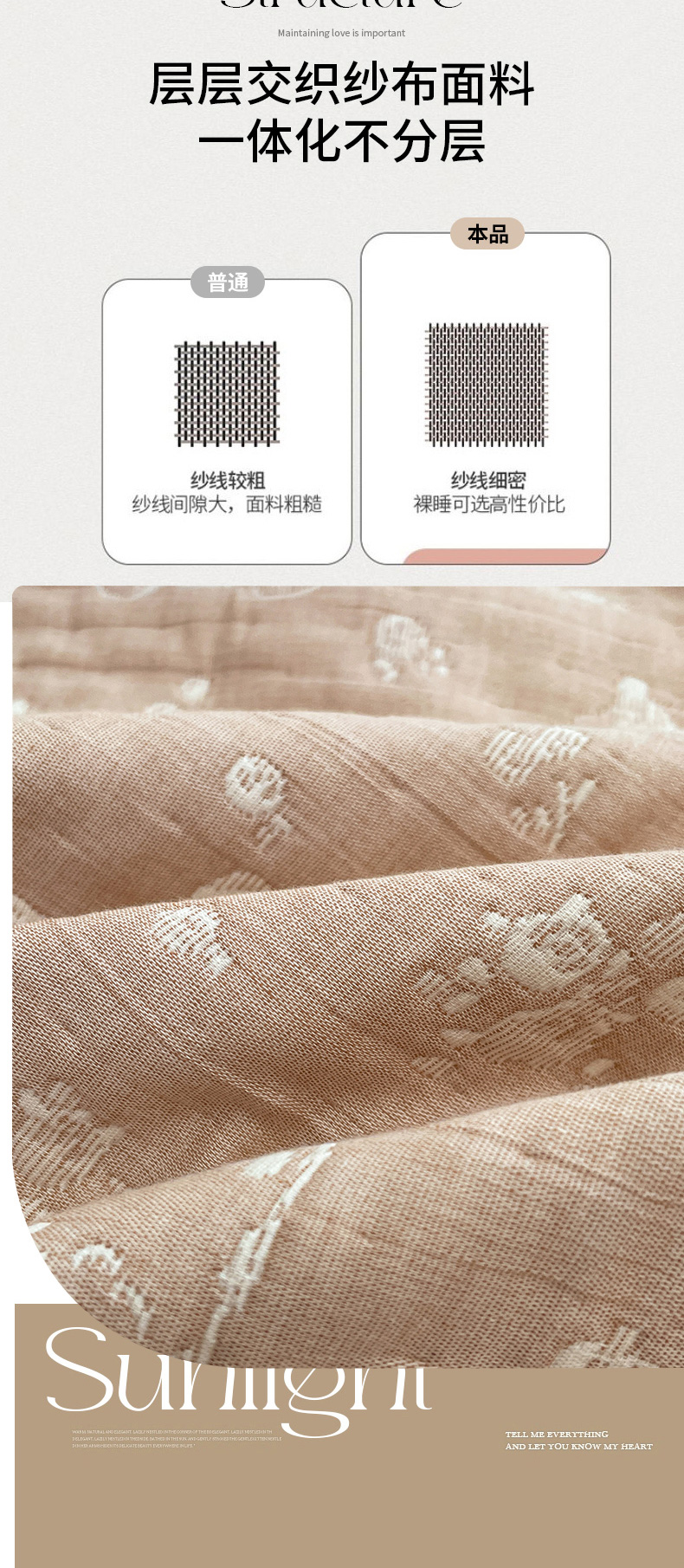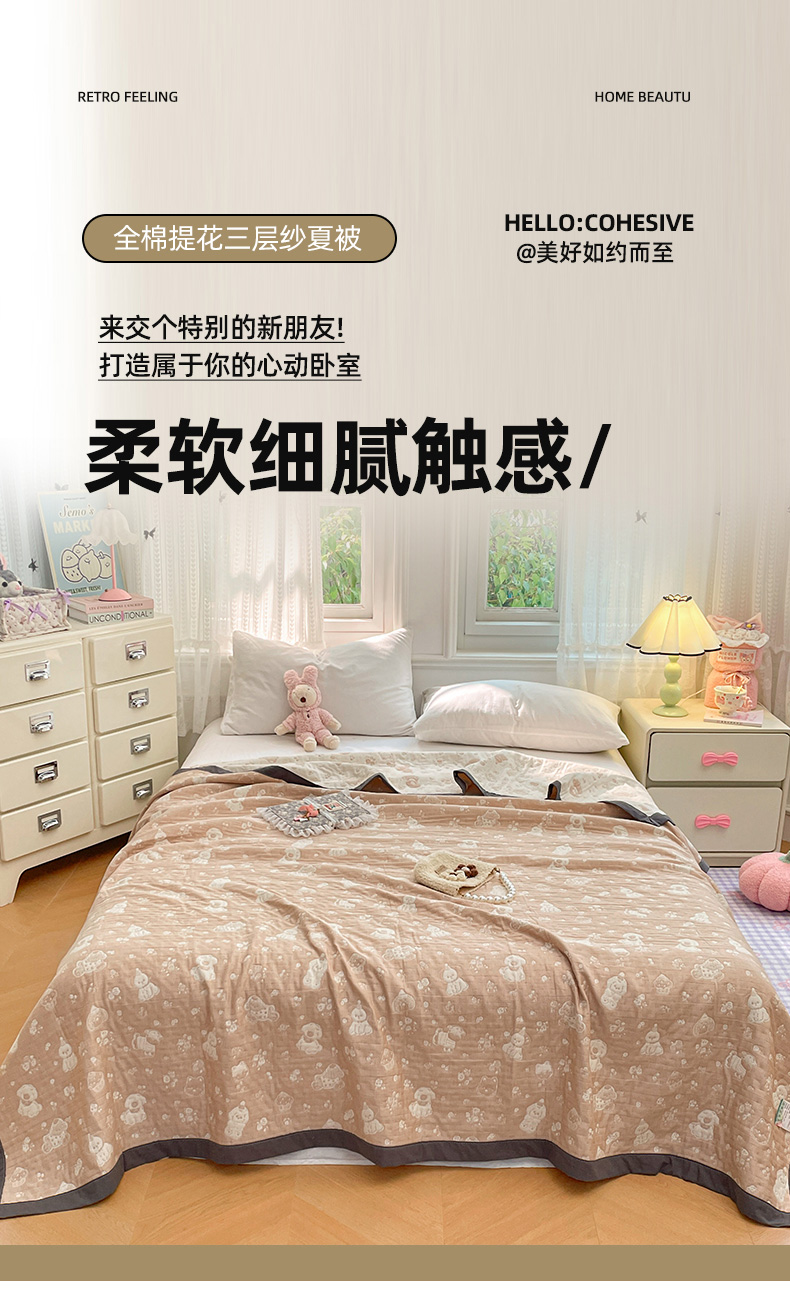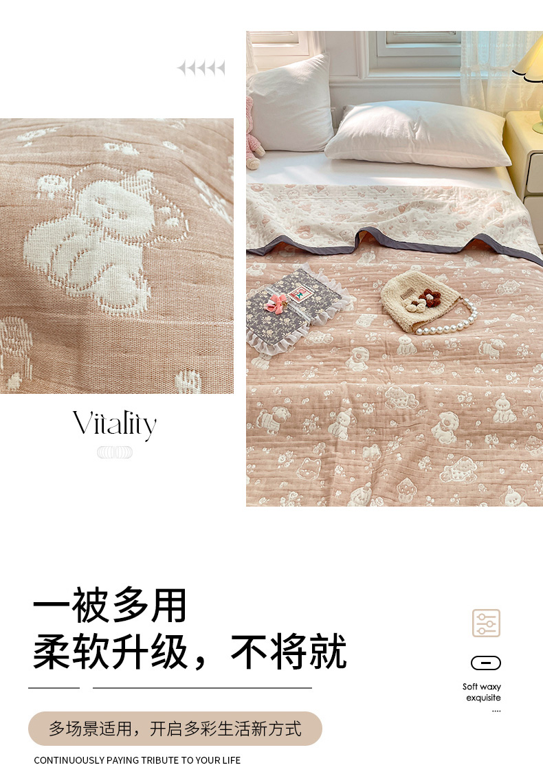 商品名称:云天家纺 2026新款A类全棉三层纱多功能毛巾被(盖毯床单夏被) 萌宠小狗-咖