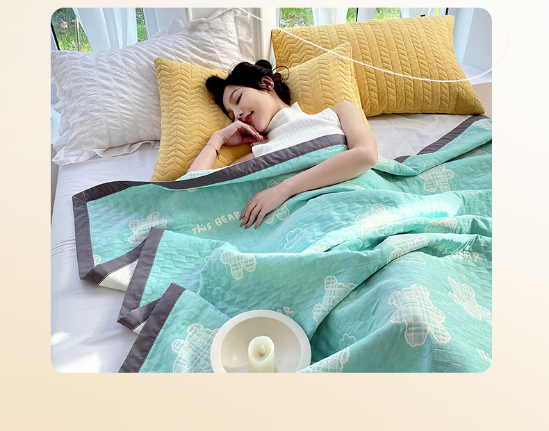 云天家纺 2026新款A类全棉三层纱多功能毛巾被(盖毯床单夏被) 云朵小熊-绿