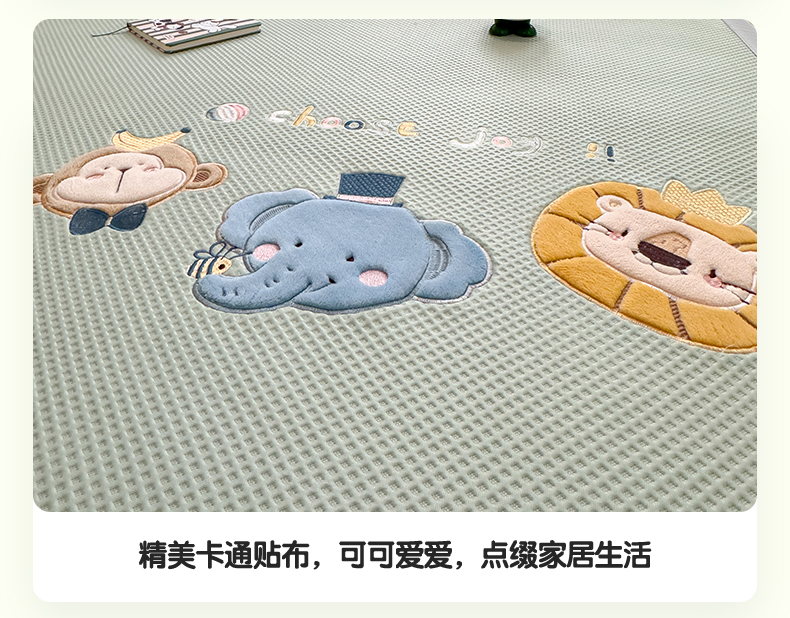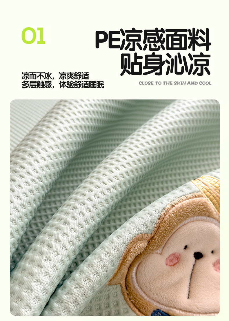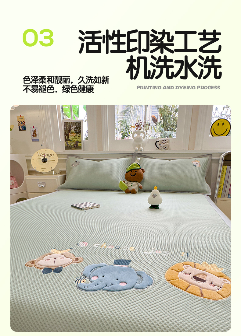 商品名称:兄弟坊 2026新款高端A类PE高分子冰丝凉席卡通贴布凉席冰豆豆软凉席 动物园-青