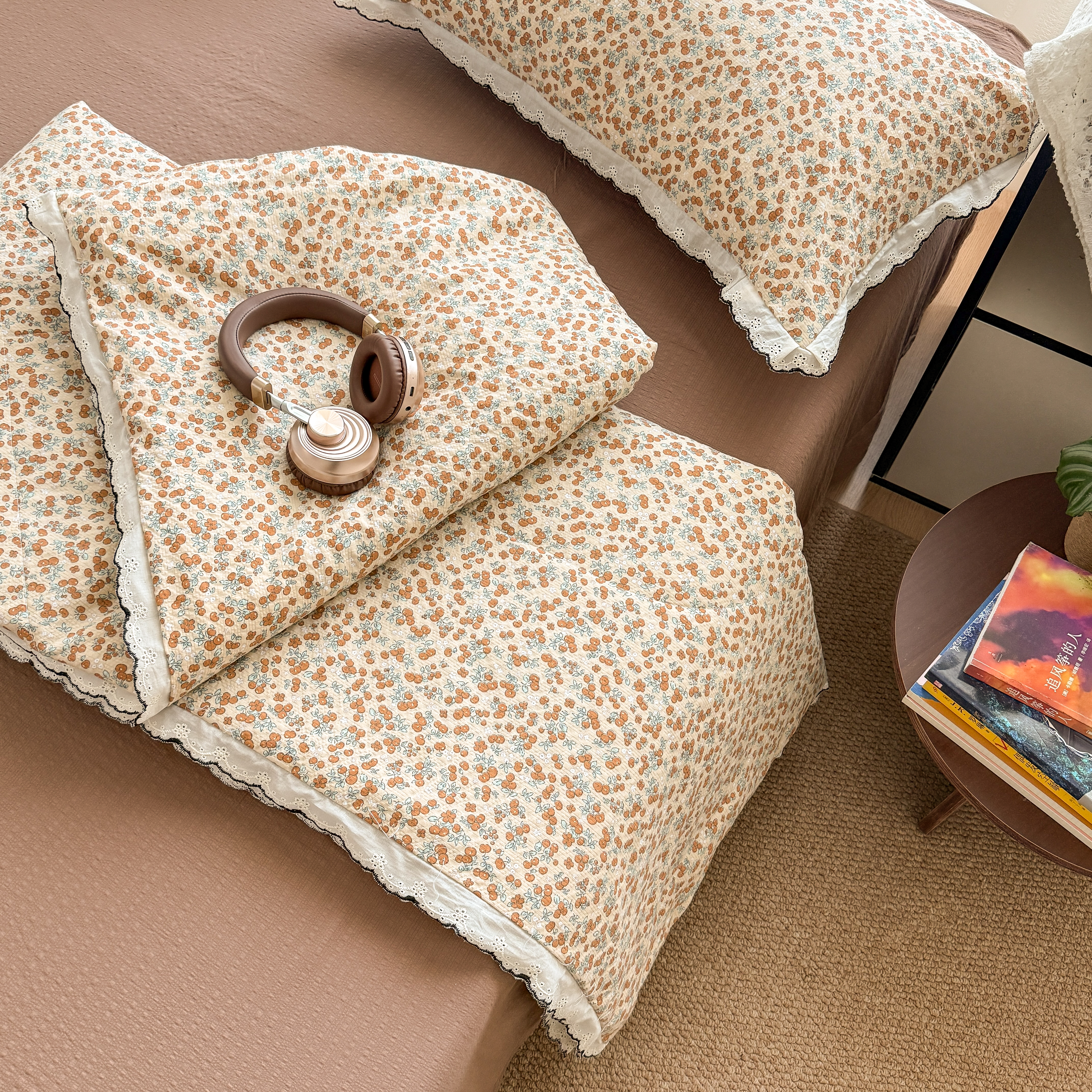 商品名称:欧尚 2026新款蕾丝花边夏被款四件套 暖橘枝