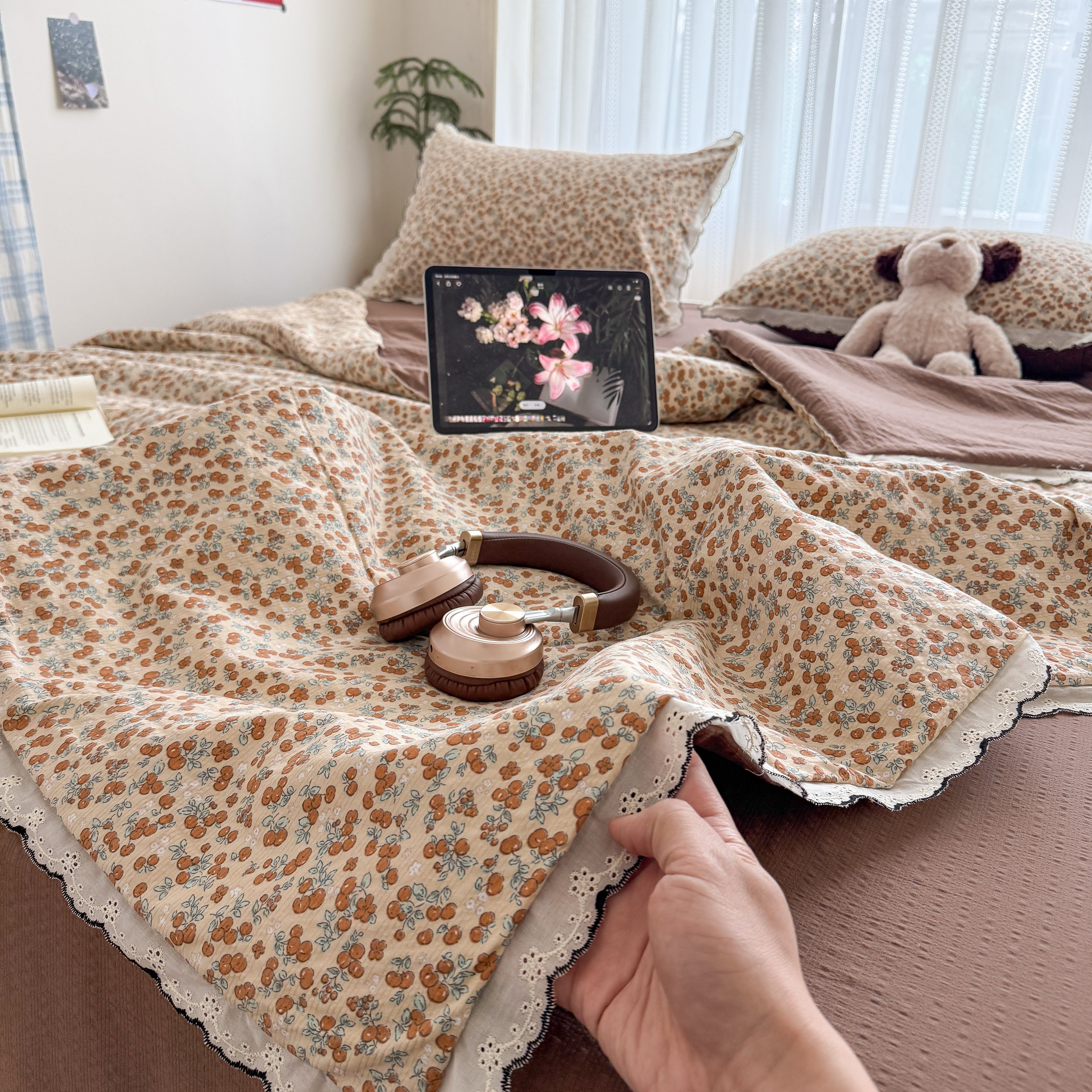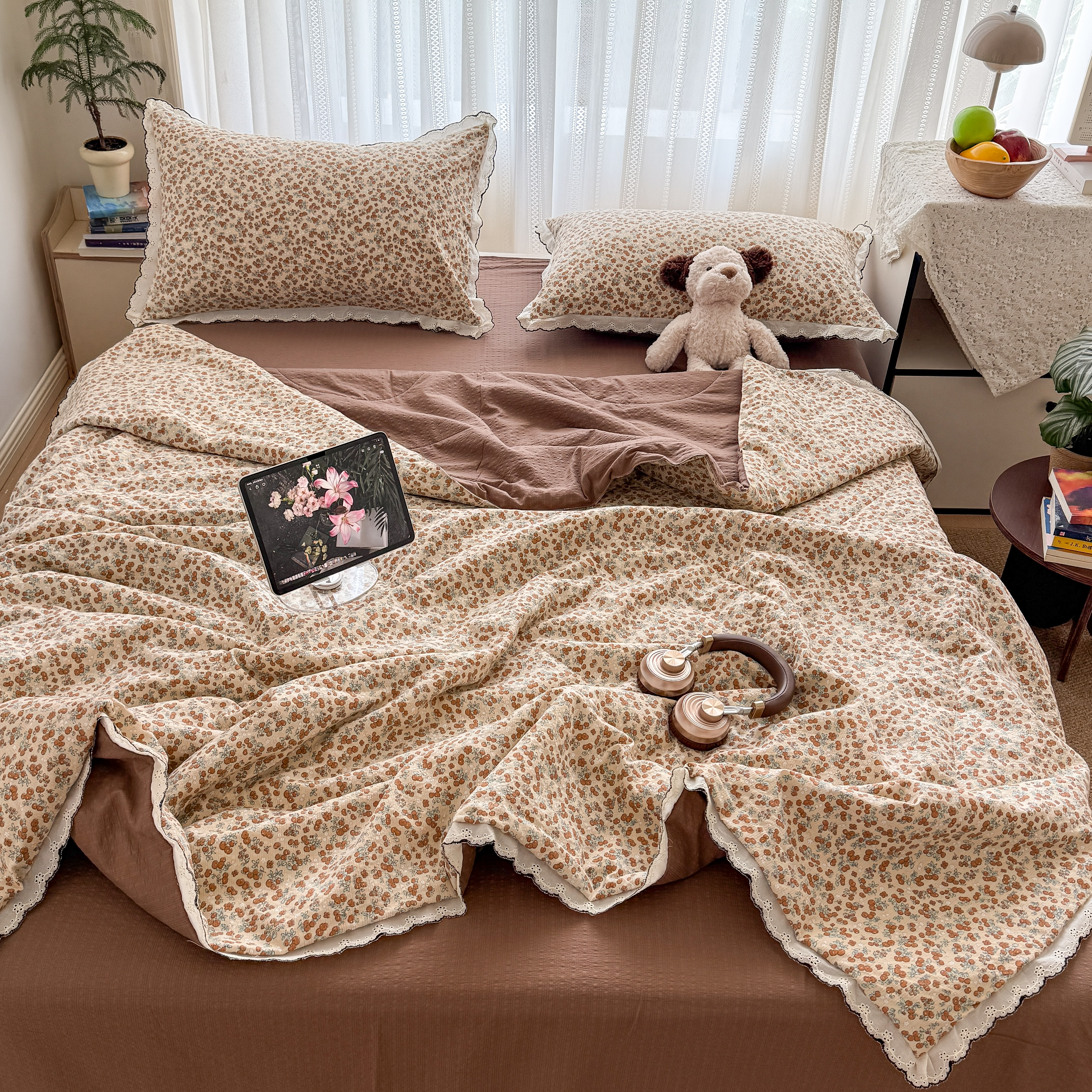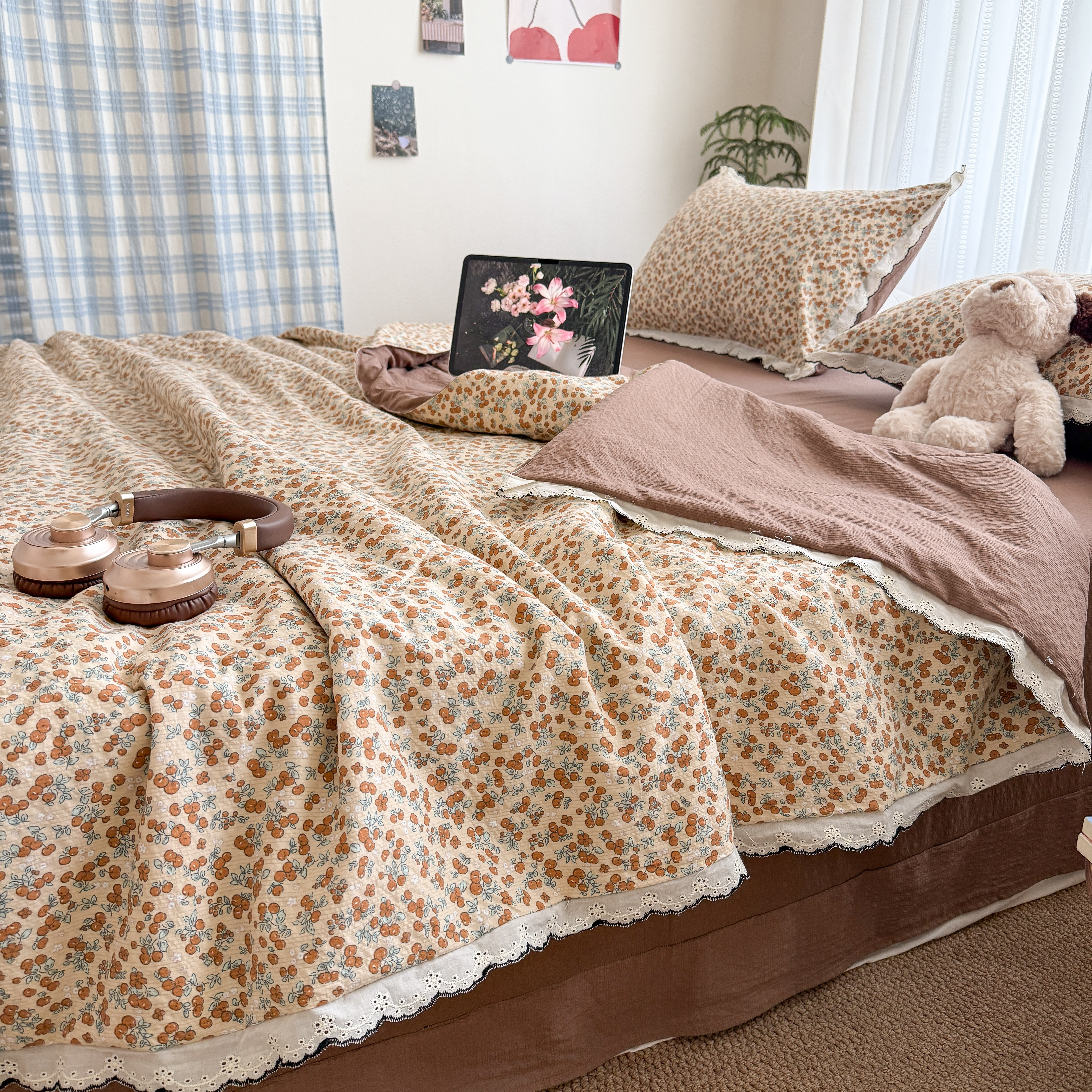 (总)2026新款泡芙纱床盖四件套,咖啡小猫,咖爱心,咖豹纹,小女孩,摇摇马,星愿,暖心,暖橘枝,梦境,梨花落,波点,甜甜兔,紫苏,花束,花花,蝶舞