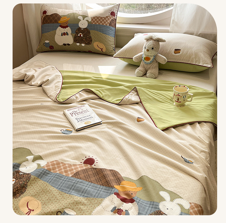 (总)羚羊语家纺 2026新款全棉印花仿锦氨凉感丝夏被100纯棉空调被卡通两用多功能被子被芯小冰皮冰淇淋夏凉被,森野茶会,苏西的兔子,奶芙猫,艾尔的伙伴,懒懒树屋