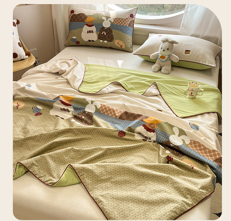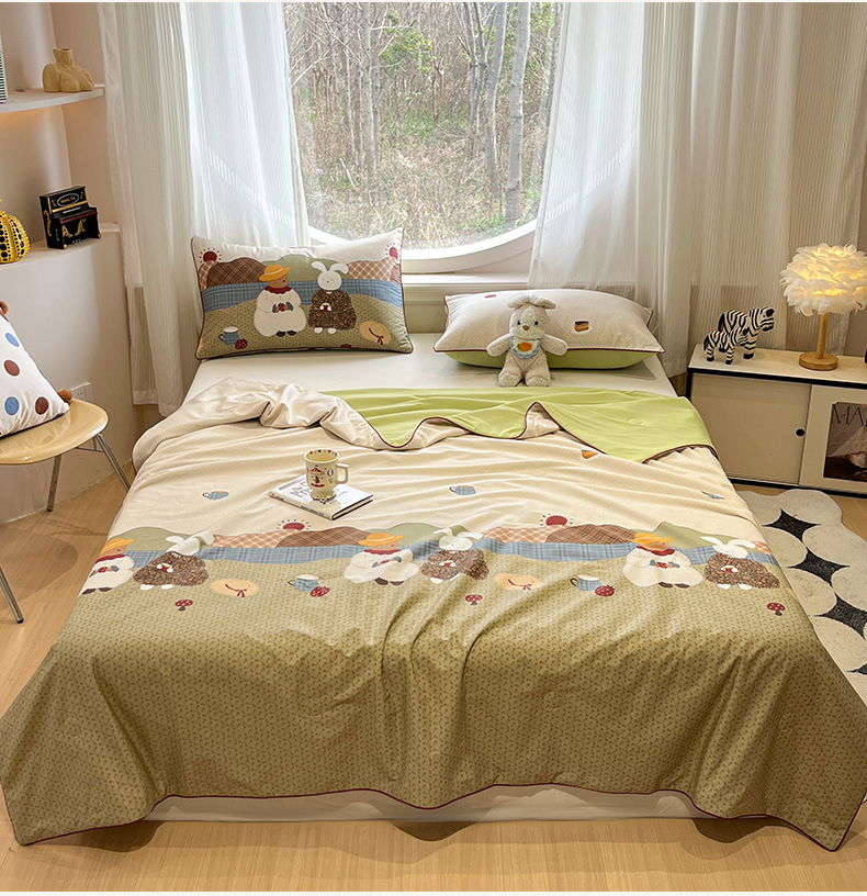 商品名称:羚羊语家纺 2026新款全棉印花仿锦氨凉感丝夏被100纯棉空调被卡通两用多功能被子被芯小冰皮冰淇淋夏凉被 森野茶会