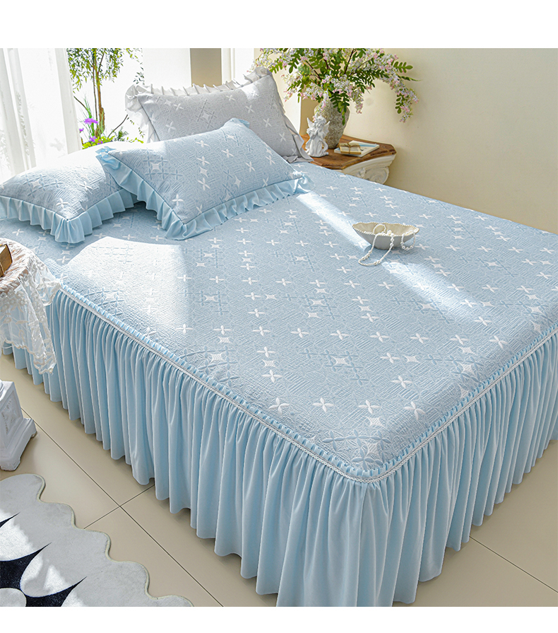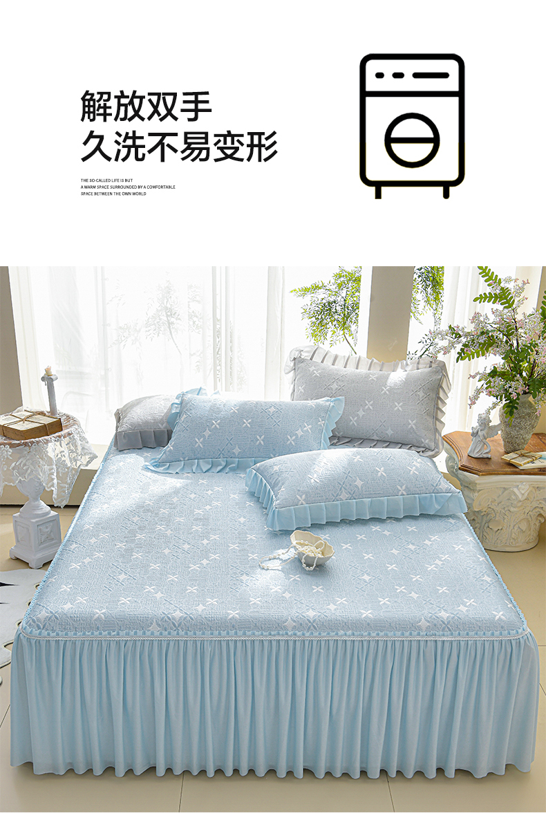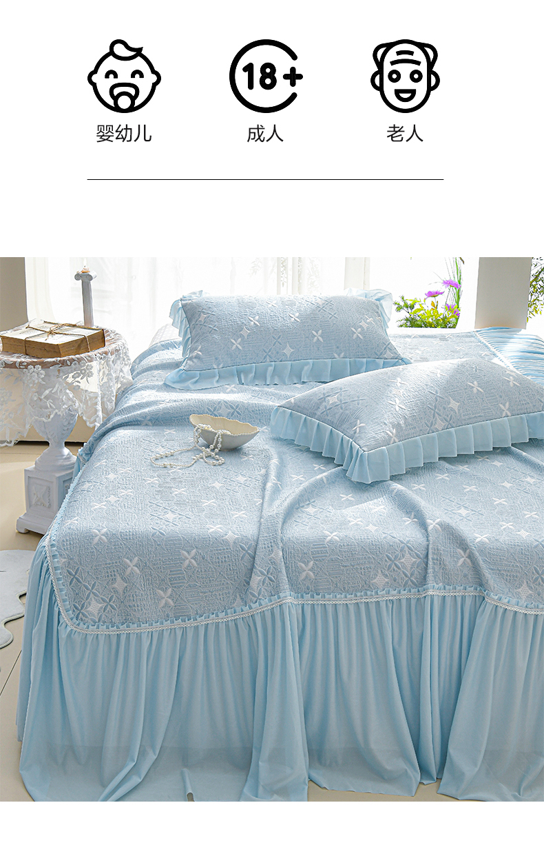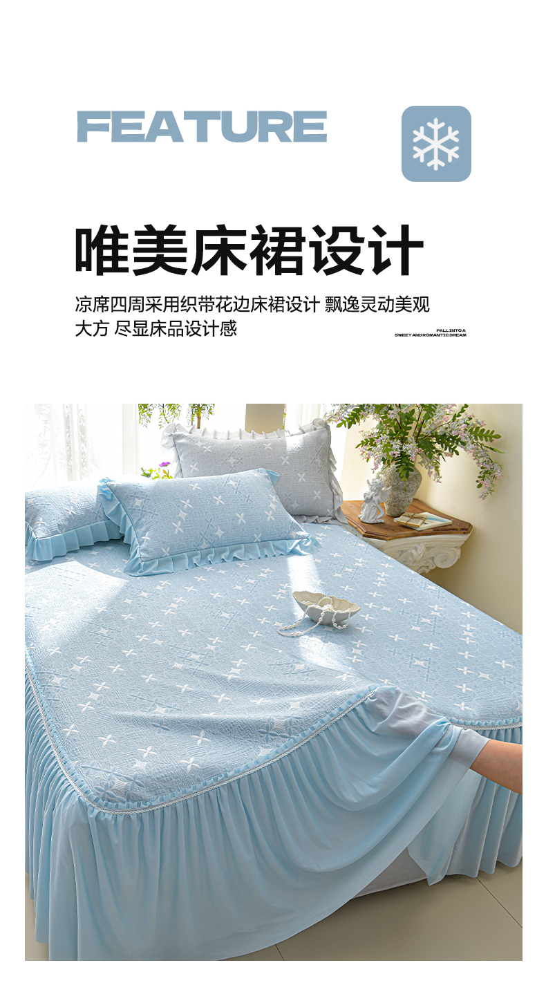 商品名称:绘萱家居 2026新款PE提花冰凉豆豆床裙款凉席席子凉席 星愿-蓝