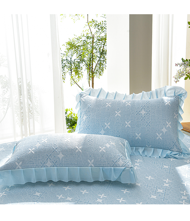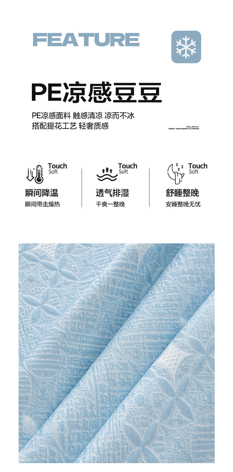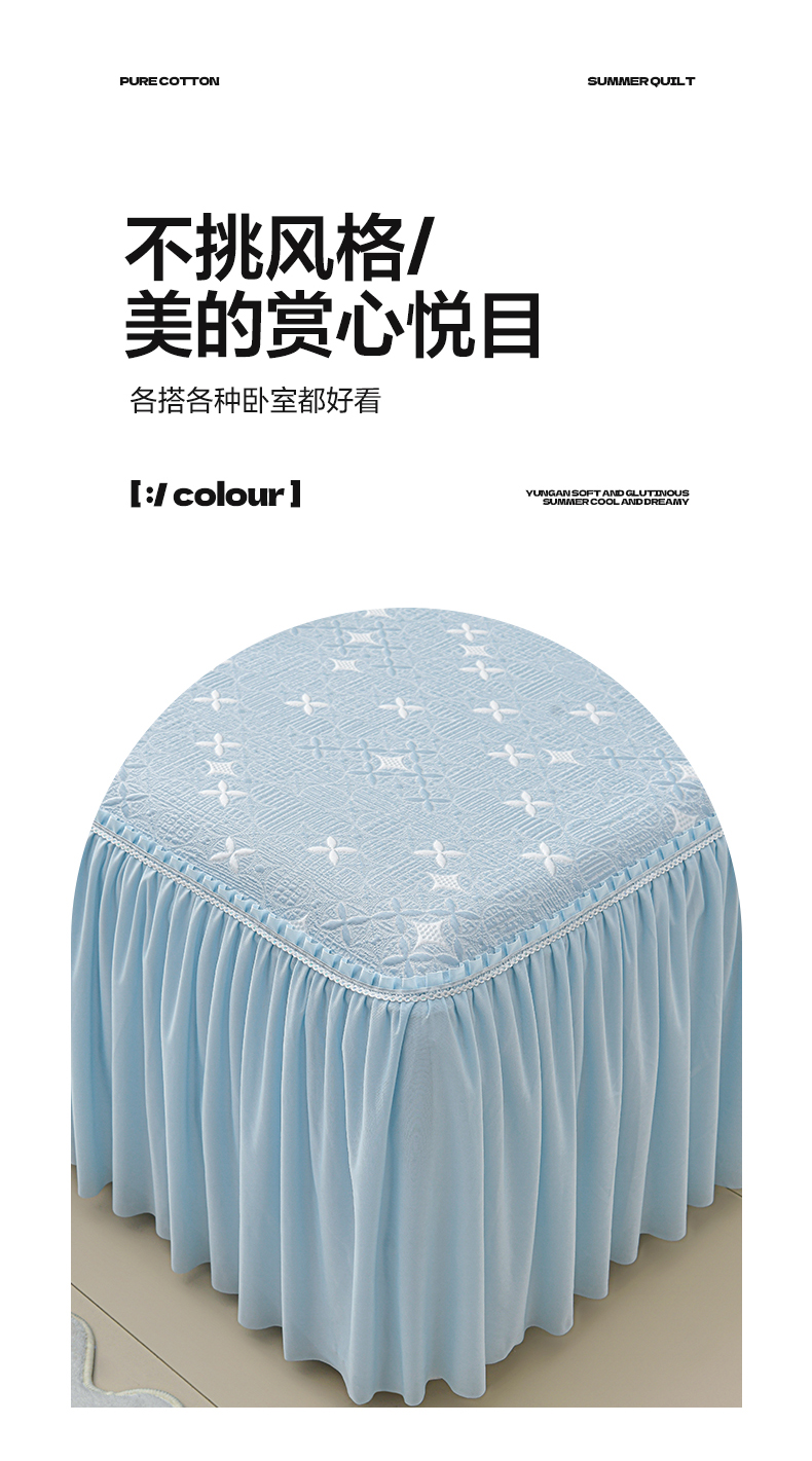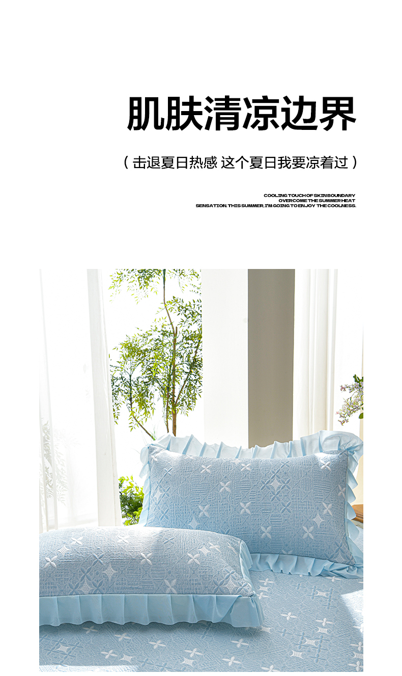 商品名称:绘萱家居 2026新款PE提花冰凉豆豆床裙款凉席席子凉席 星愿-蓝