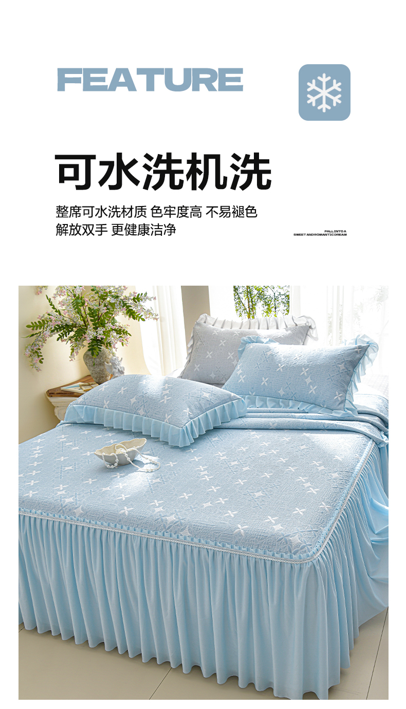 (总)绘萱家居 2026爆款冰凉豆豆凉席三件套床裙款冰丝软席子,叶影漫纱-绿,冰凉豆豆-粉,冰凉豆豆-灰,冰凉豆豆-蓝,冰凉豆豆-绿,叶影漫纱-粉,叶影漫纱-灰,叶影漫纱-蓝