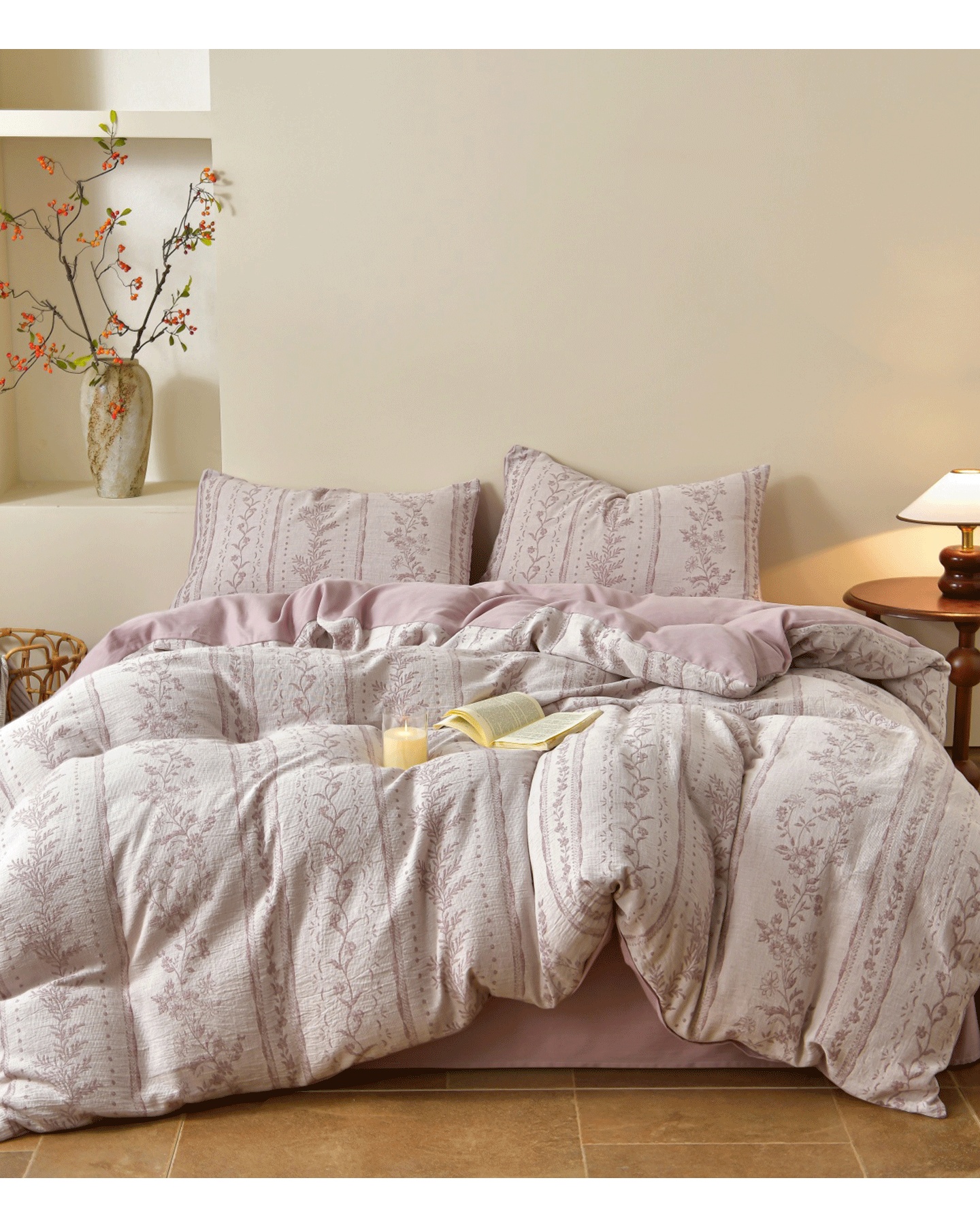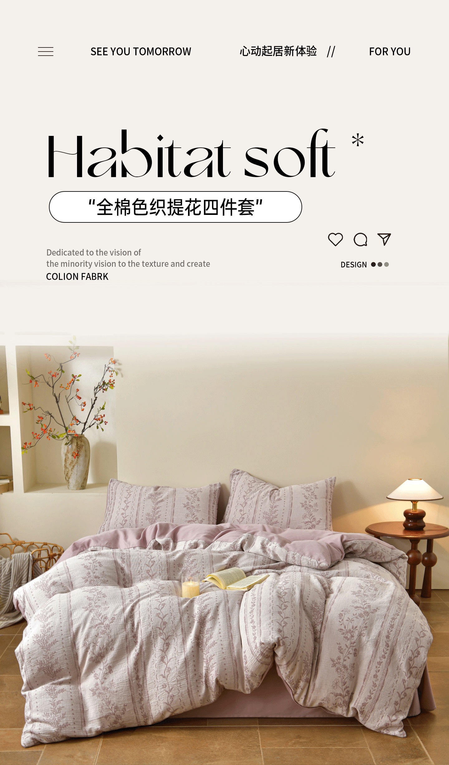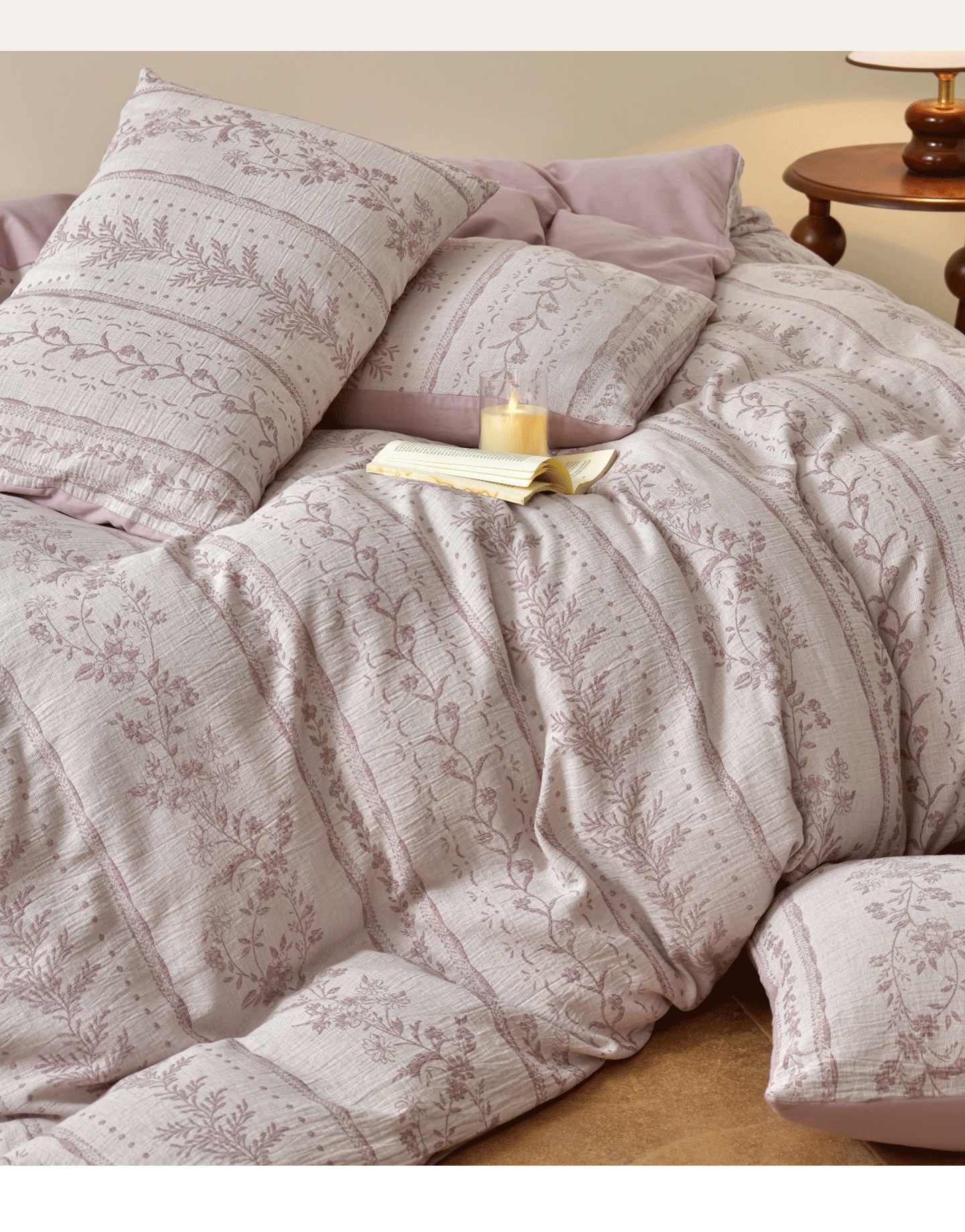 当前位置: 91家纺网 > 商品网购 > 床品套件 > 四件套 > 全棉普通四件套 > 菡宝 2026新款人字纹全棉色织提花四件套-浪漫花蕴 浪漫花蕴 紫