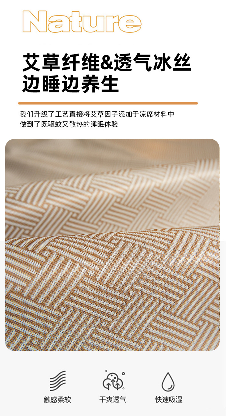 当前位置: 91家纺网 > 商品网购 > 床上用品 > 凉席 > 航途席业 2026新款刺绣可水洗碳光冰丝席宽包边无纺布冰丝席艾香系列 艾香千鸟格床笠款咖色