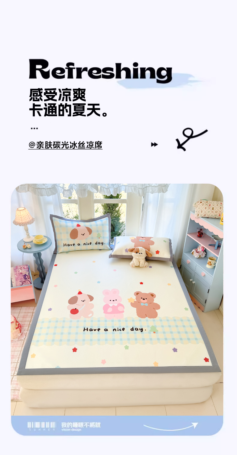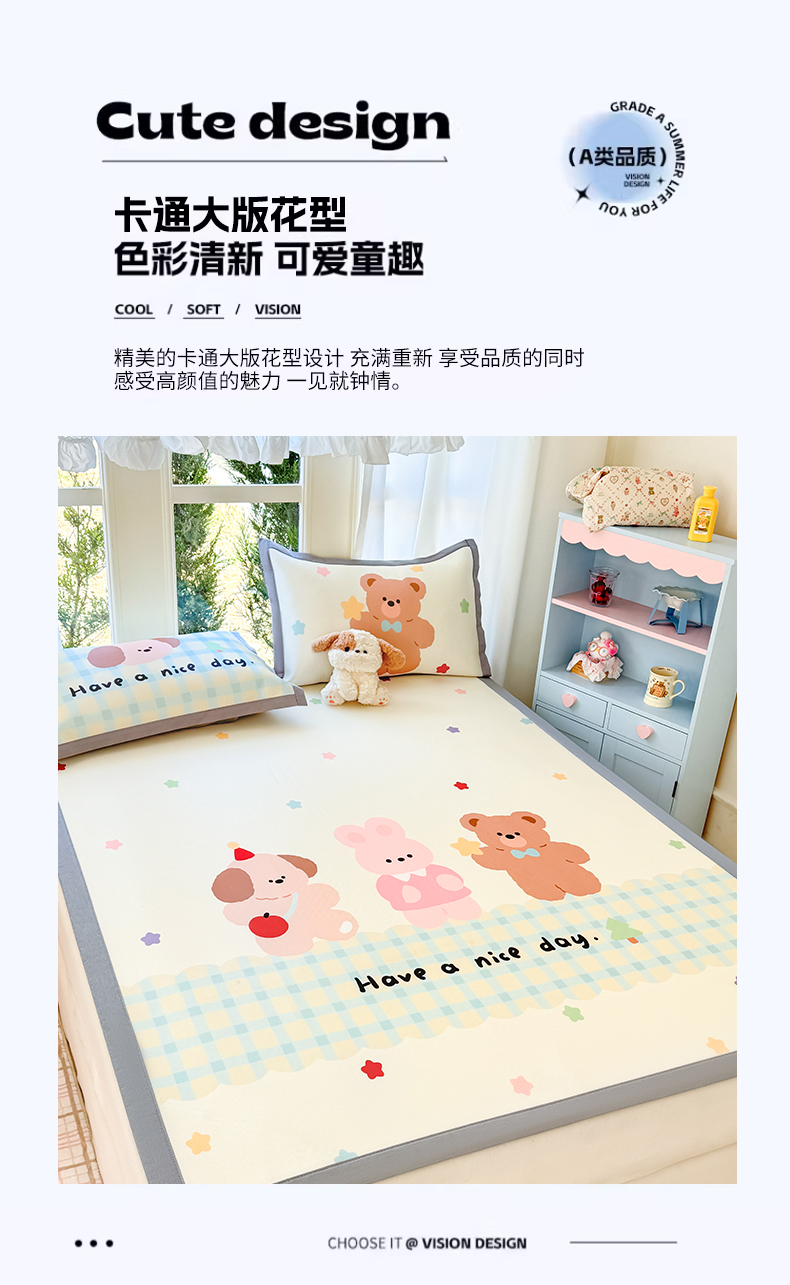 (总)川悦生活 2026新款碳光冰丝大阪卡通凉席,bu卡卡-水蓝,bu卡卡-香芋,春日茶花,蛋糕女孩,复古小调,萌动好梦,奶汪甜园,奶香星空,软熊甜心,森林胖仔,闪亮狗仔,甜趣派对,甜园小狗-奶蓝,甜园小狗-天蓝,夏日甜茶,夏日甜星,小麦喵喵,小米樱桃,小喵屋,星星好梦,幸运色彩
