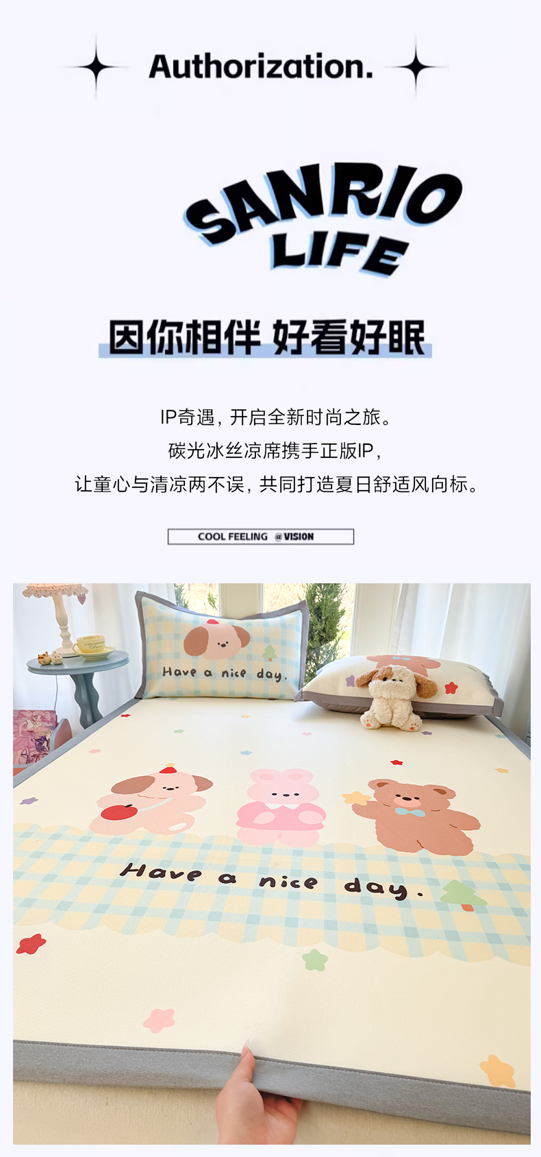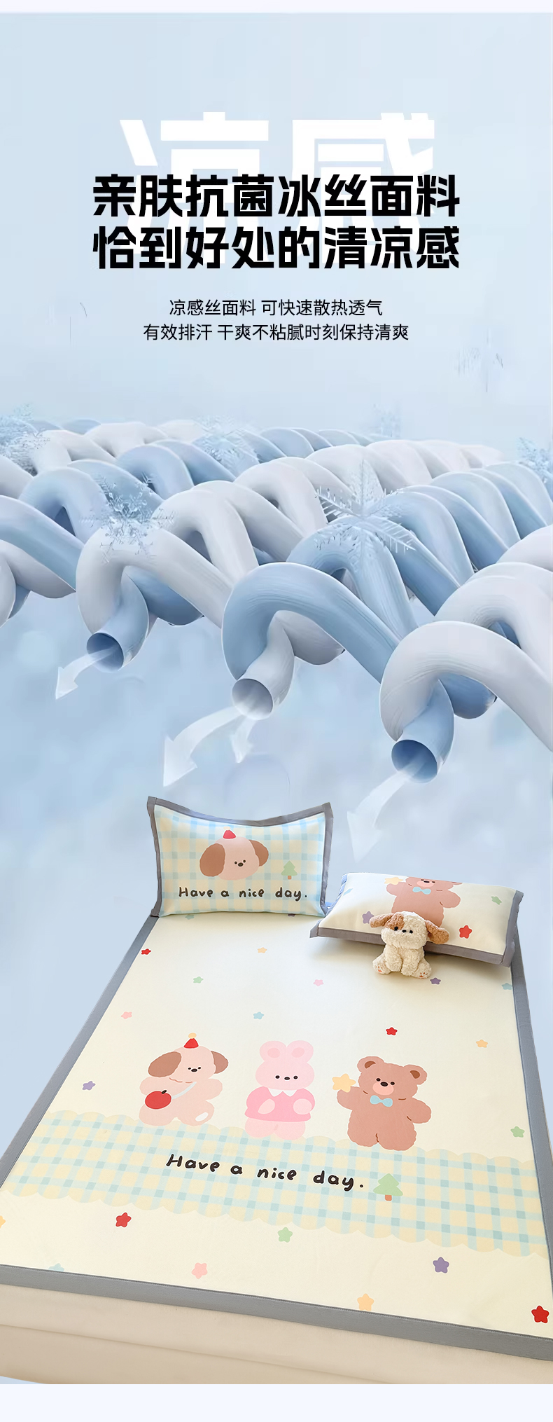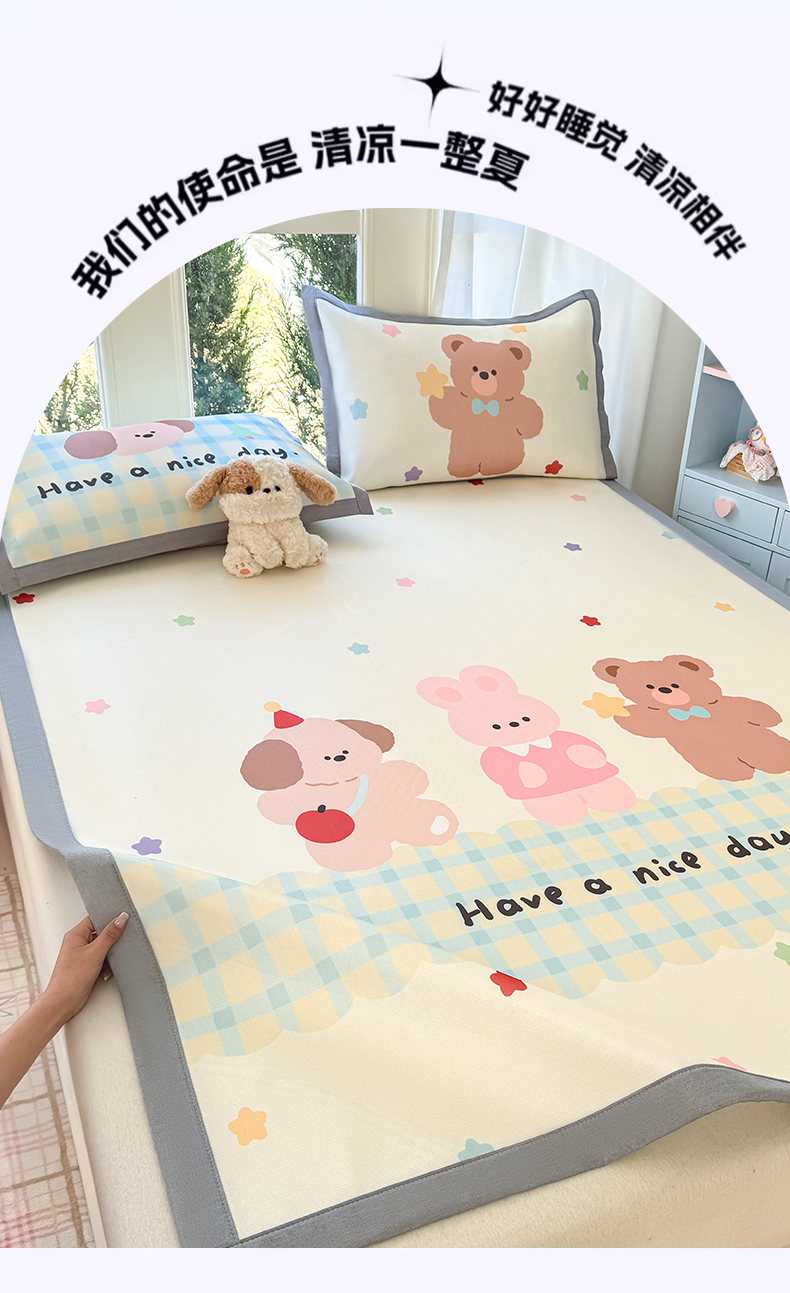 商品名称:川悦生活 2026新款碳光冰丝大阪卡通凉席 森林胖仔
