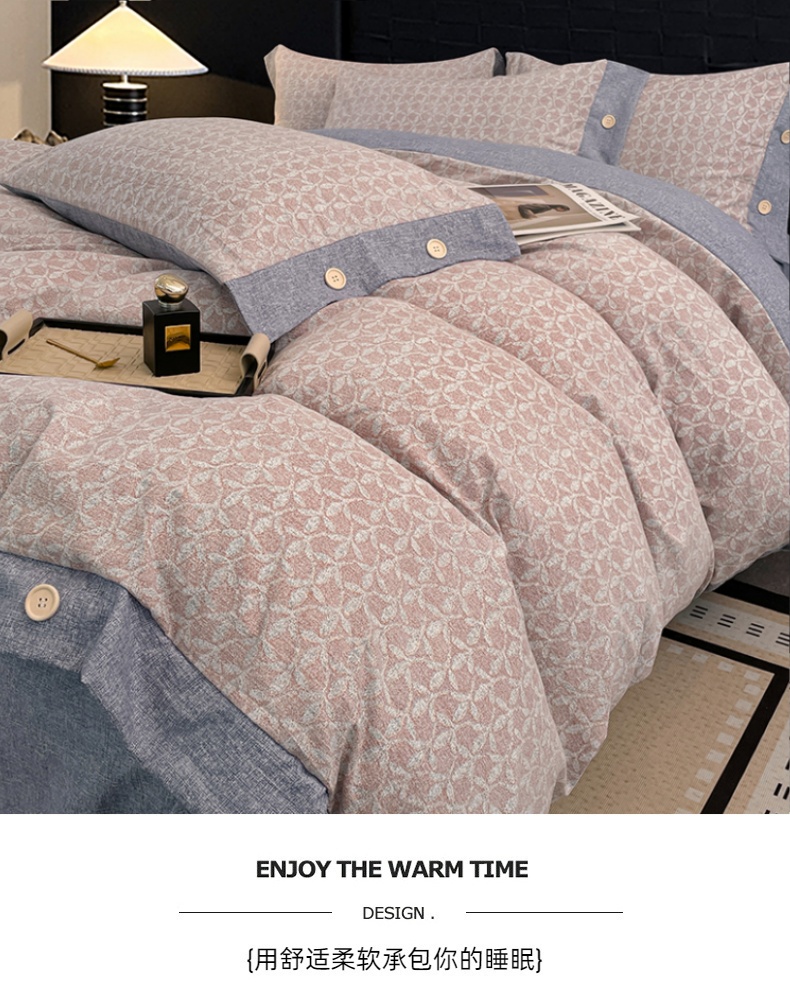 当前位置: 91家纺网 > 商品网购 > 床品套件 > 四件套 > 其它四件套 > 梦舒羽 2026春夏新款A类原麻纽扣四件套加厚被套床单宿舍双人床仿亚麻套件-最新款 叶影