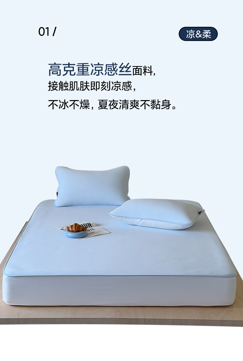 三味舒屋 2026新款【清氧小冰皮】凉感丝软凉席凉垫 轻氧蓝
