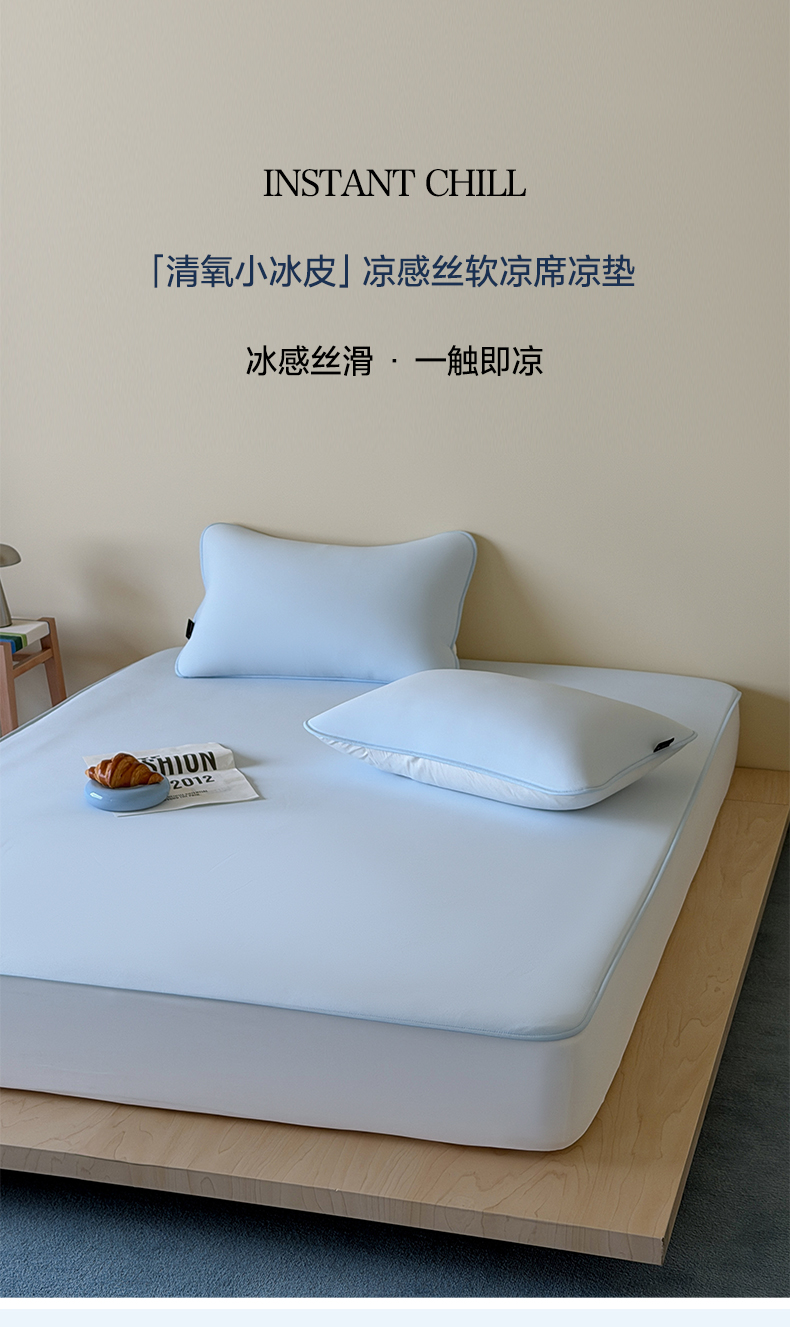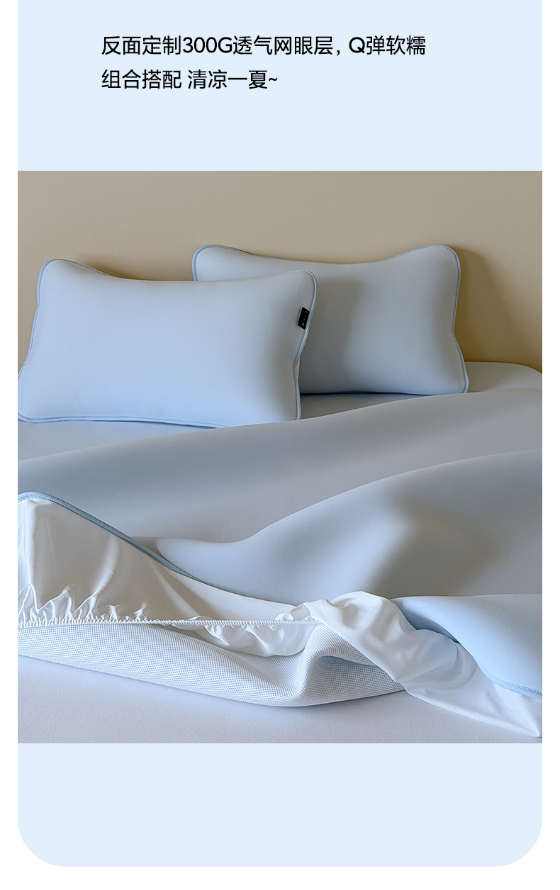 商品名称:三味舒屋 2026新款【清氧小冰皮】凉感丝软凉席凉垫 轻氧蓝