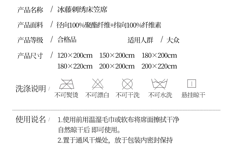 商品名称:情恒家纺 2026新款冰藤席床笠款席子凉席三件套-皇家 皇家-高级灰