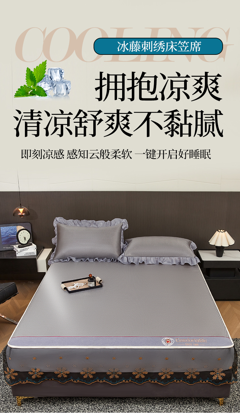 情恒家纺 2026新款冰藤席床笠款席子凉席三件套-皇家 皇家-高级灰