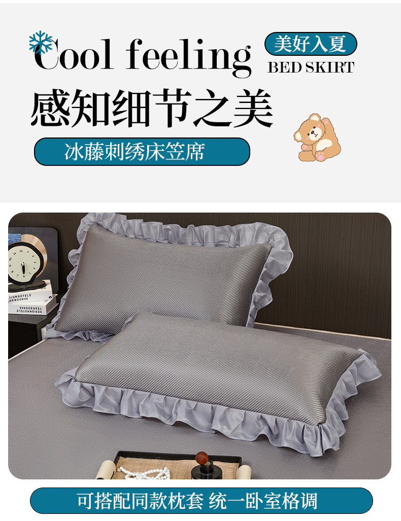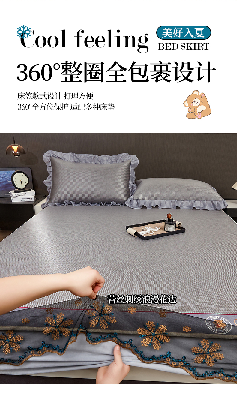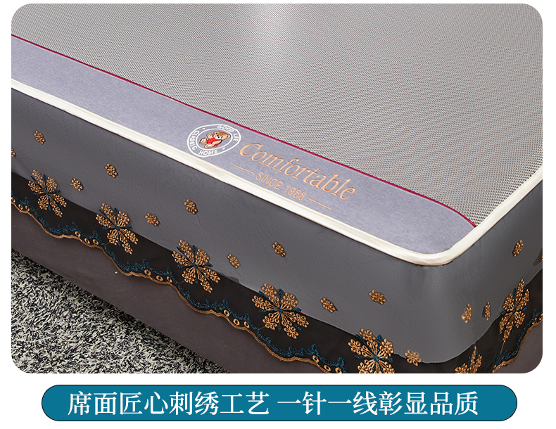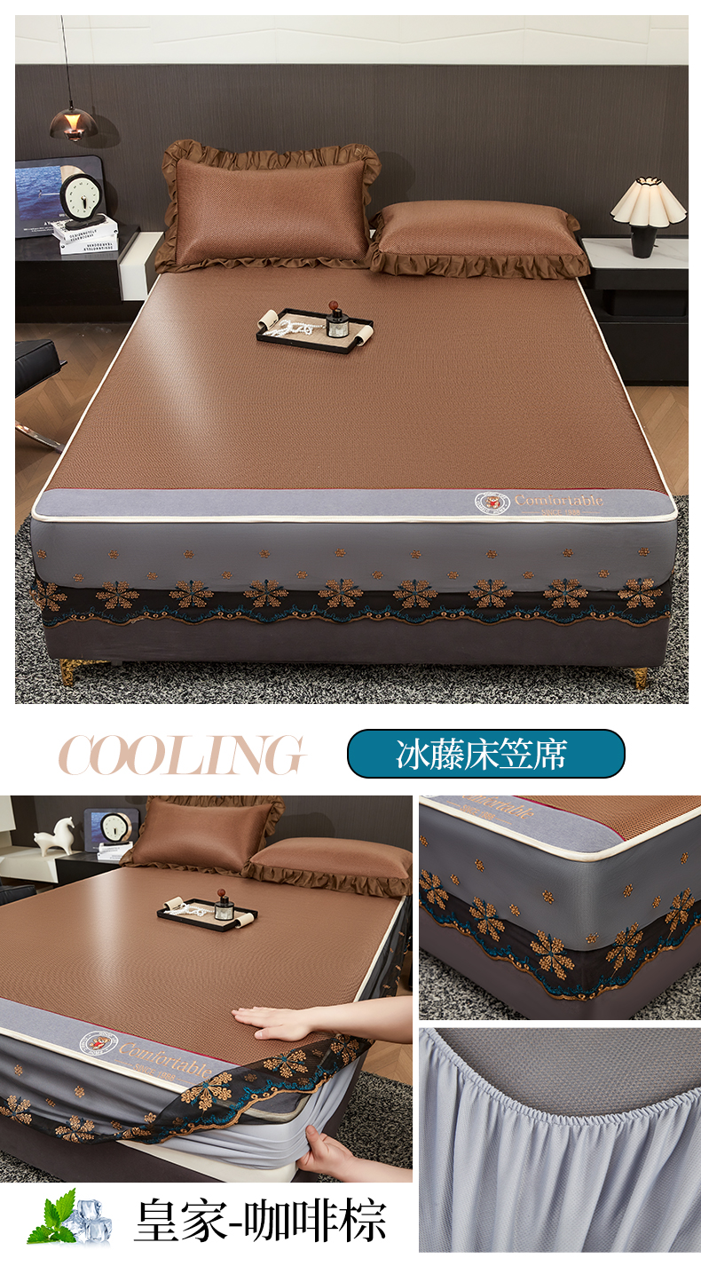 (总)情恒家纺 2026新款冰藤席可拆卸床裙款凉席席子凉席三件套-皇家,皇家-高级灰,皇家-咖啡棕,皇家-香槟金