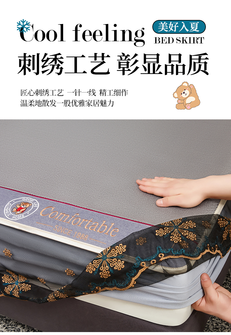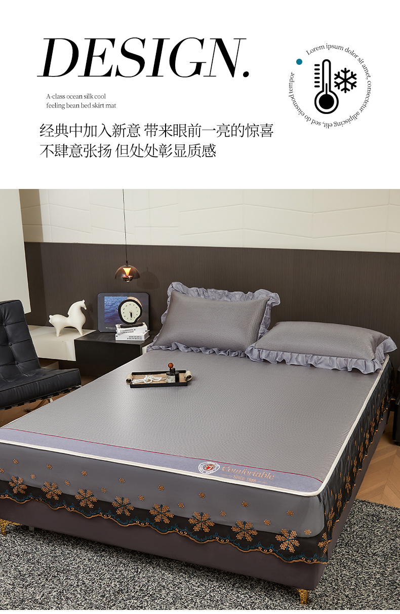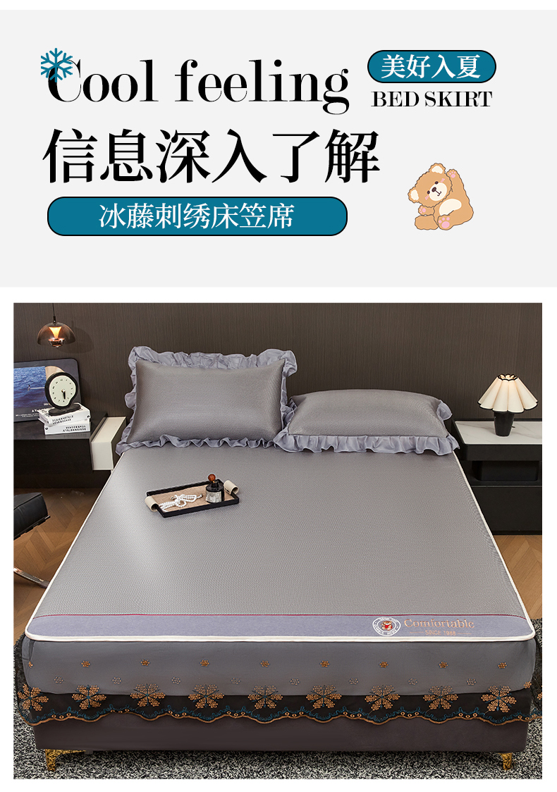 (总)情恒家纺 2026新款冰藤席可拆卸床裙款凉席席子凉席三件套-皇家,皇家-高级灰,皇家-咖啡棕,皇家-香槟金