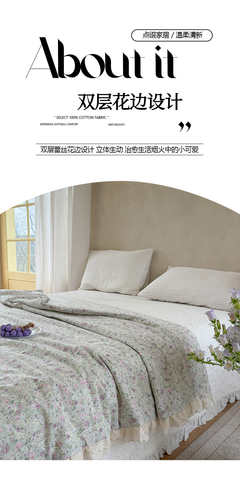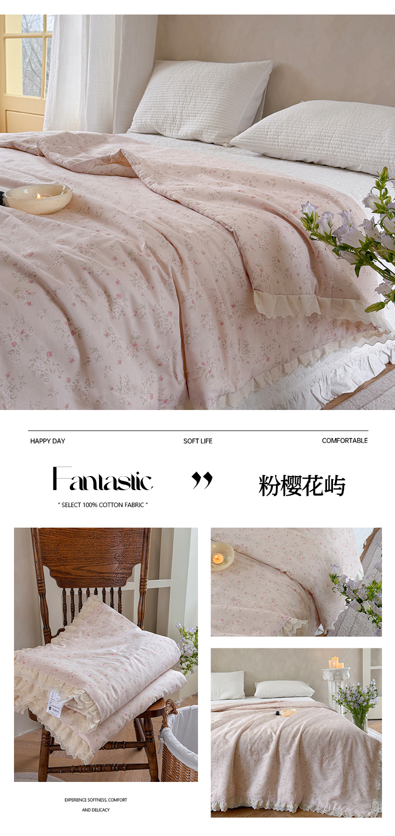 (总)暖生活 2026新款全棉花边款大豆夏被夏凉被空调被,浅夏花眠,薄荷碎花,粉樱花屿,莫奈花漾,奶杏花谣,晴日花条,紫兰花语,组合图仅供展示-不可下单