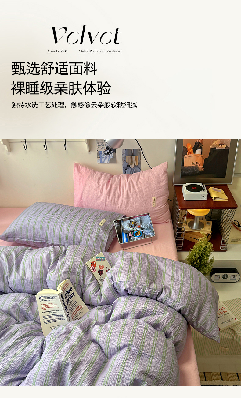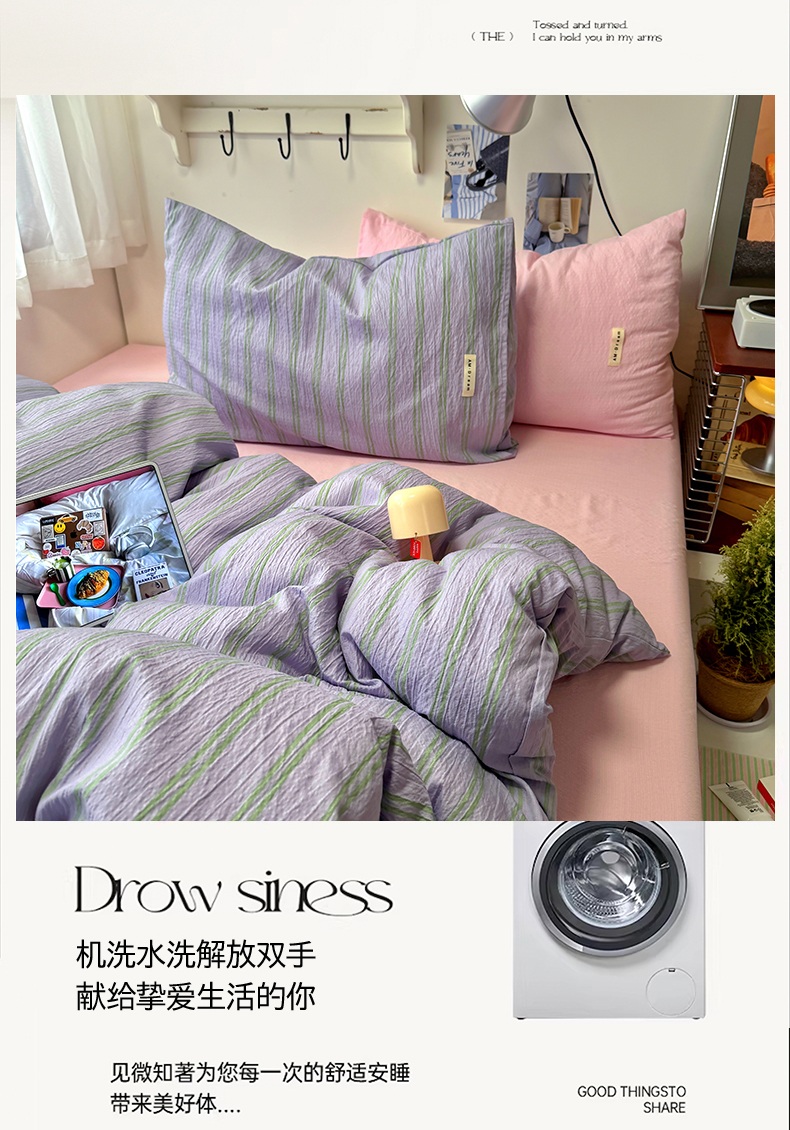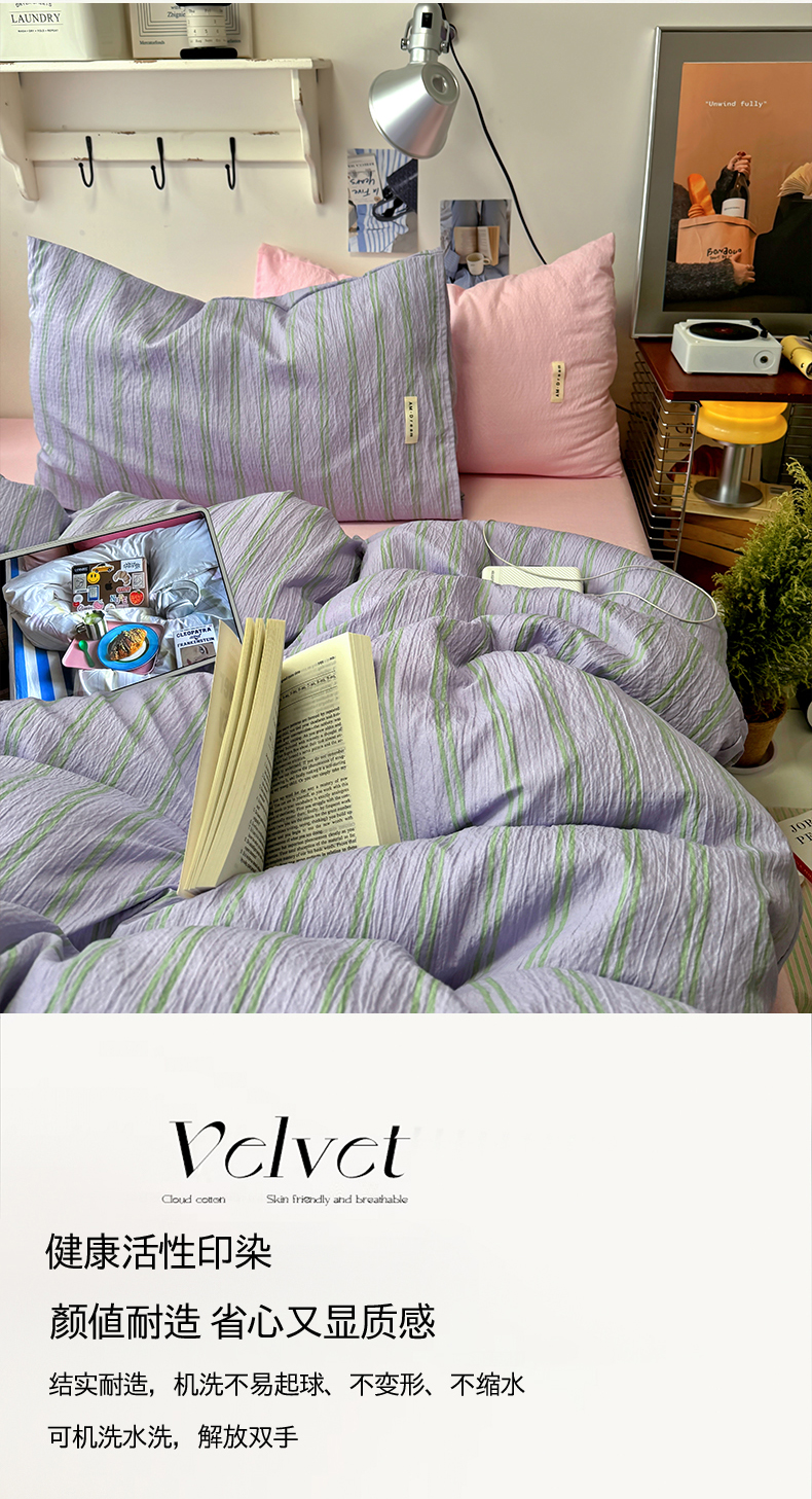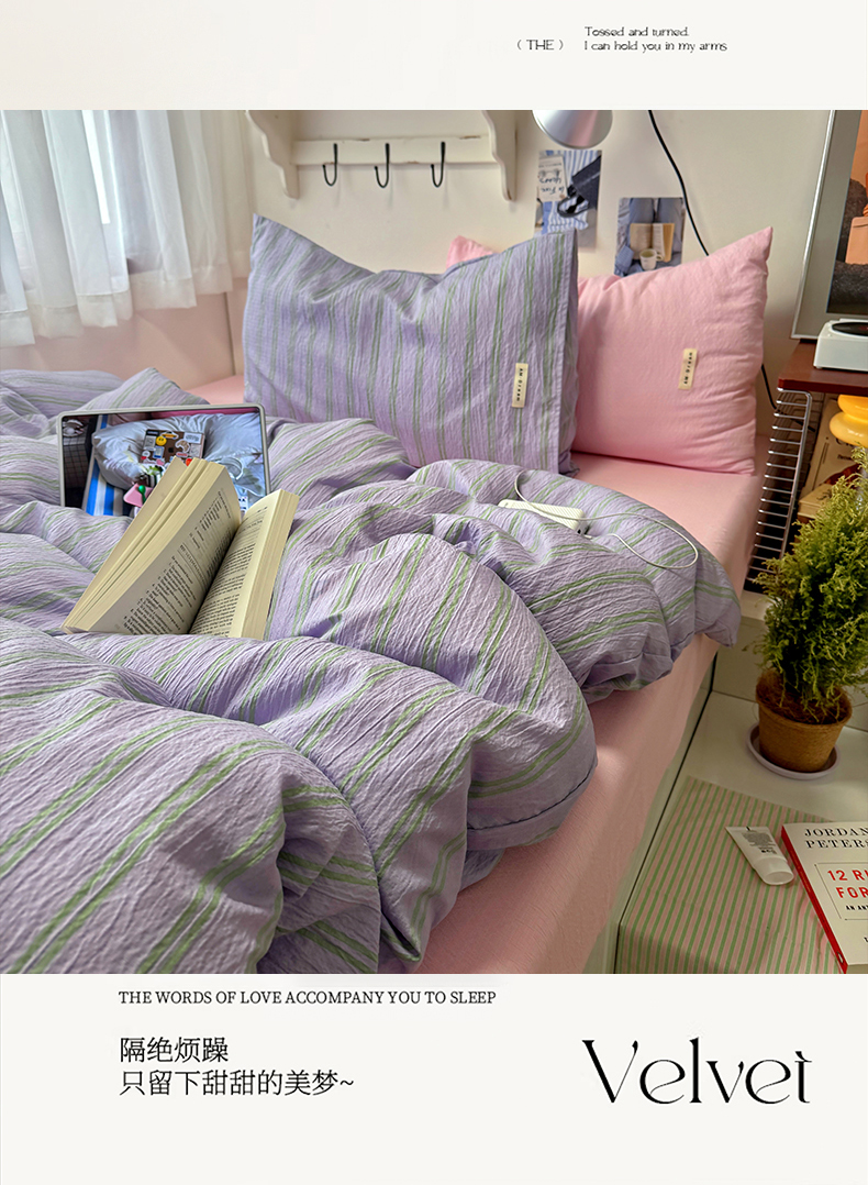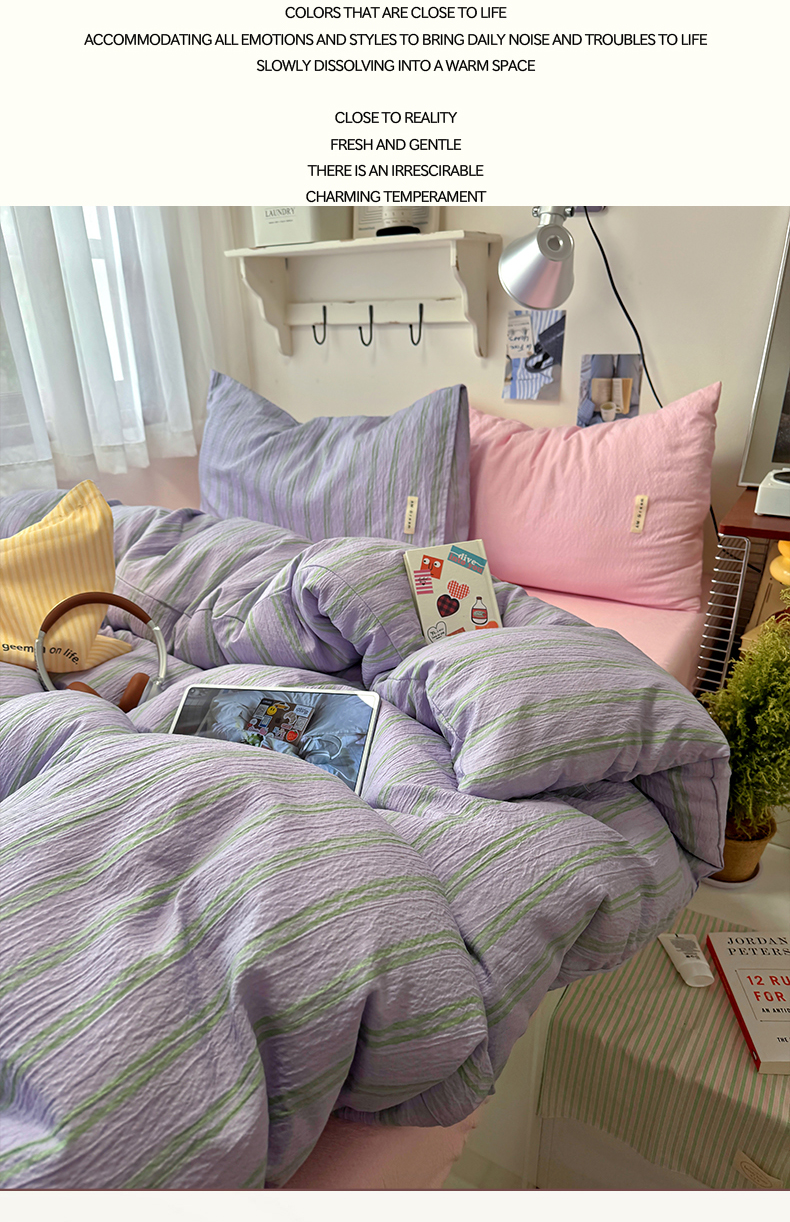 当前位置: 91家纺网 > 商品网购 > 床品套件 > 四件套 > 其它四件套 > 阿曼达 2026春夏新款简约美式条纹混搭四件套 美式休闲-柔紫条