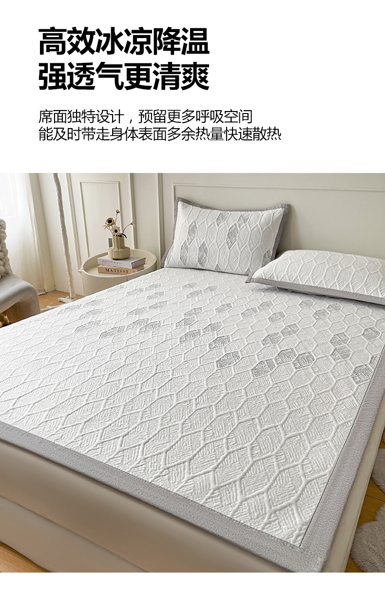 商品名称:耐思家纺 2026新款高端三明治硅胶复合PE乙纶提花冰豆豆凉席空调席韩版NIS系列(提供买家秀)床笠款 韩INS-蜂巢