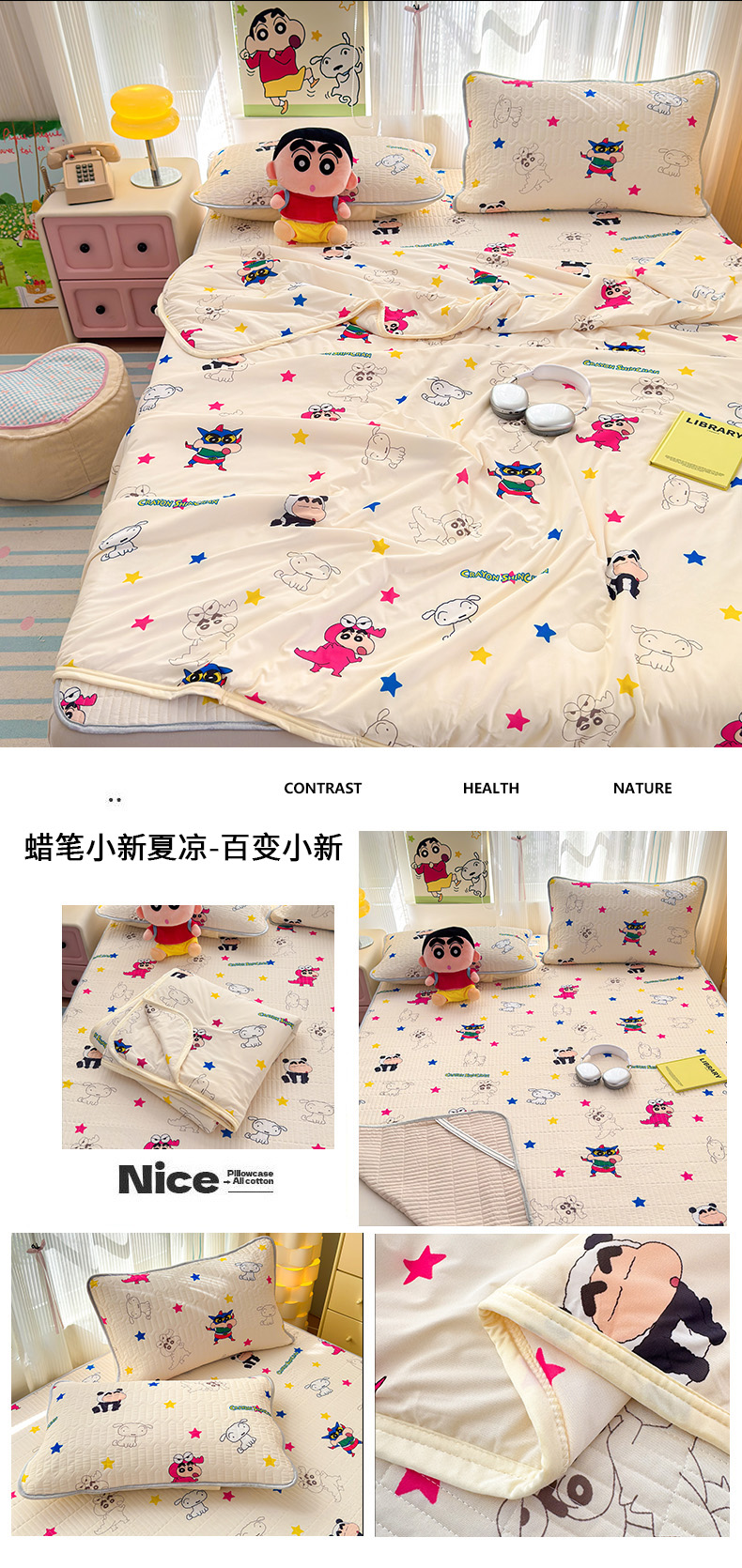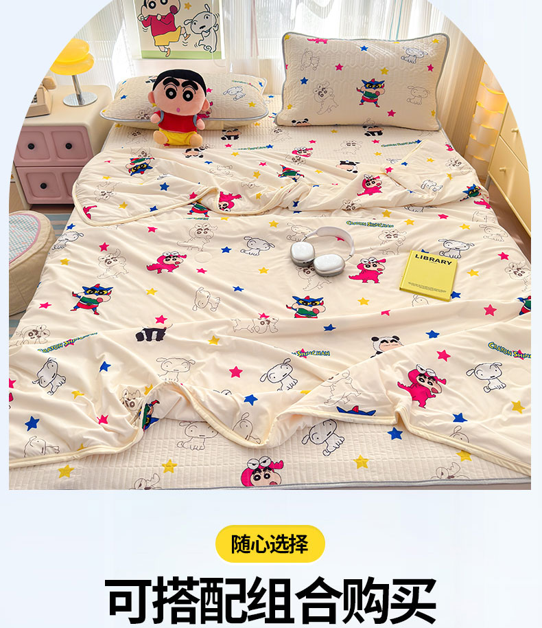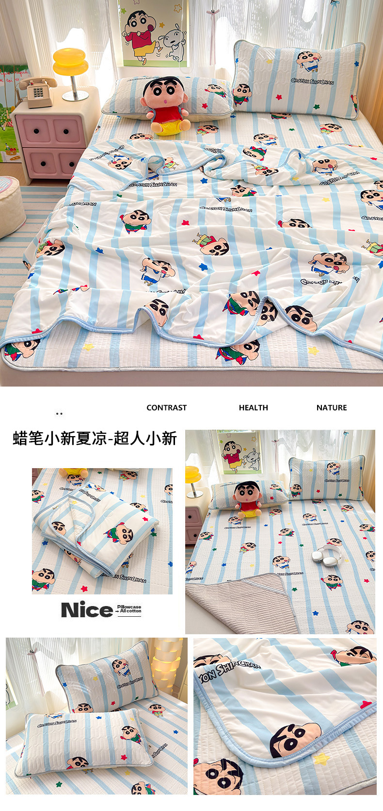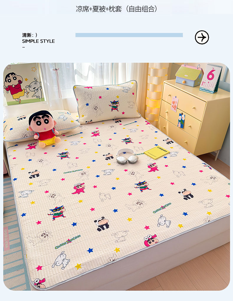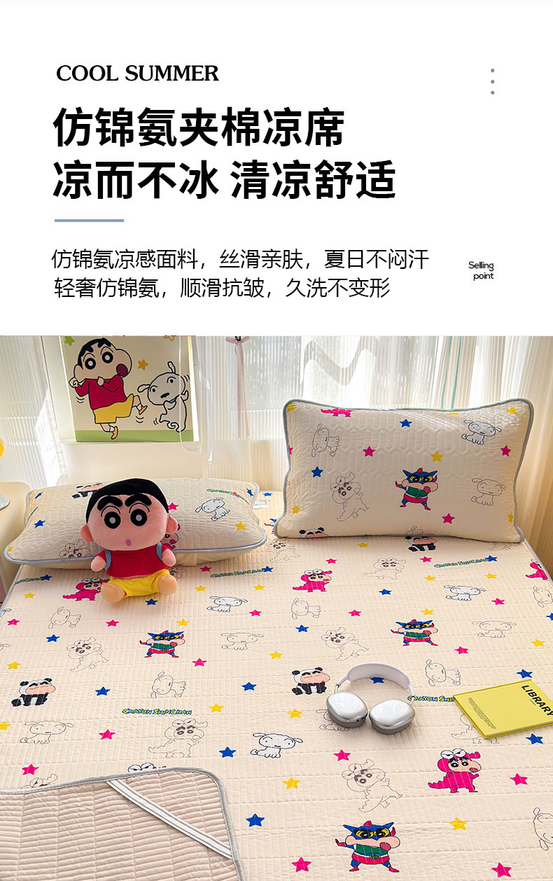 商品名称:(总)桃子家居 2026新款A类蜡笔小新授权数码印花小冰皮仿锦氨凉感凉席夏被组合夏被四件套