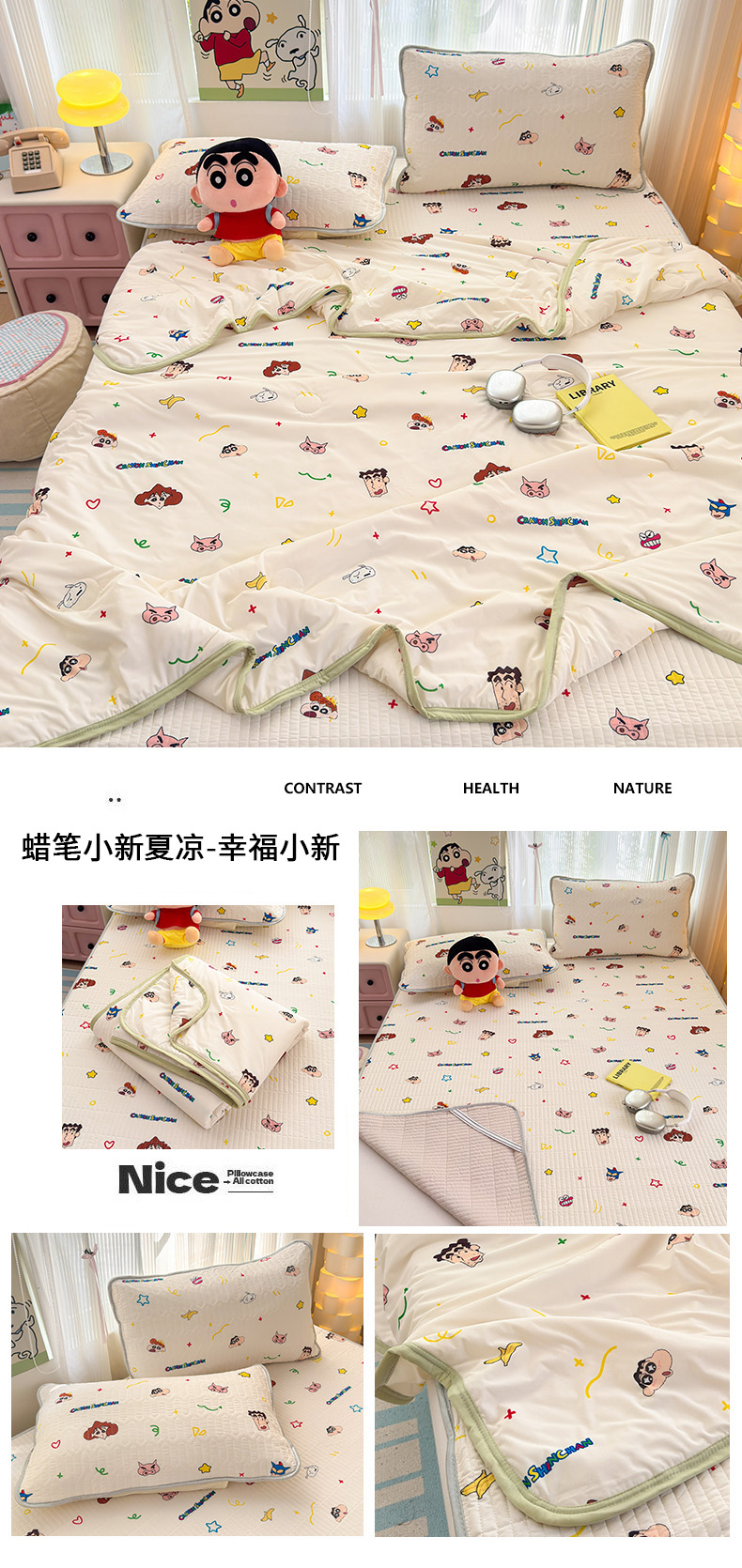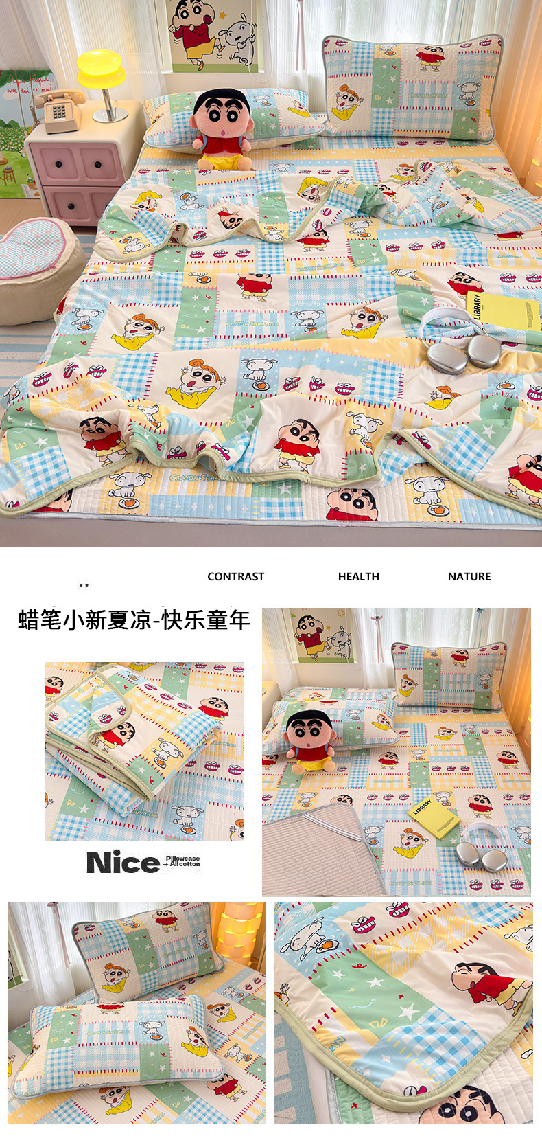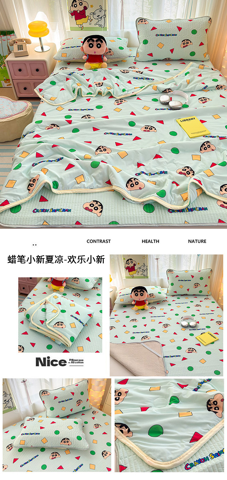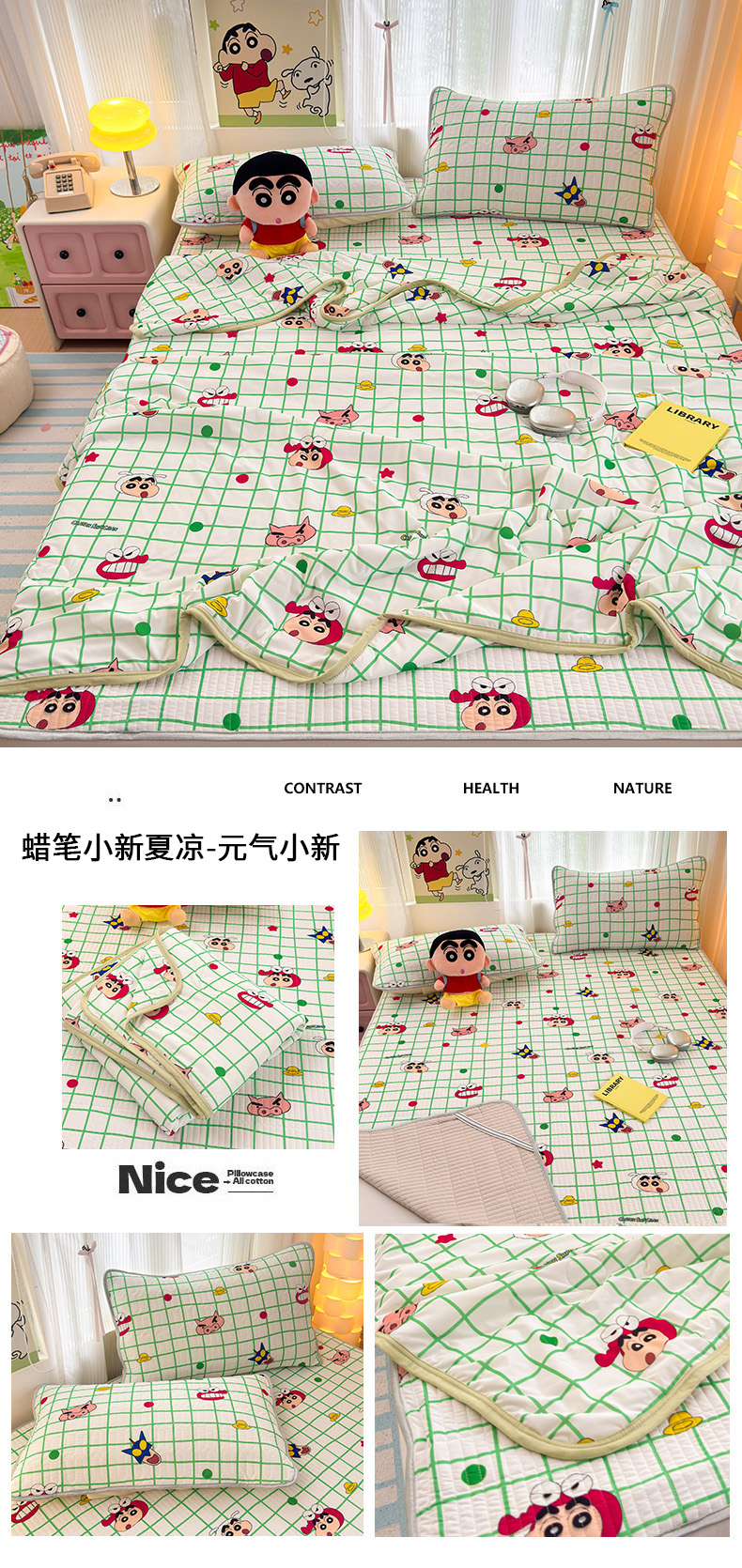 商品名称:(总)桃子家居 2026新款A类蜡笔小新授权数码印花小冰皮仿锦氨凉感凉席夏被组合夏被四件套