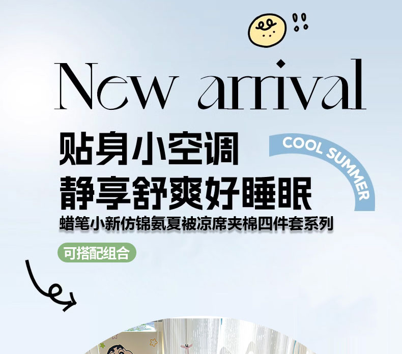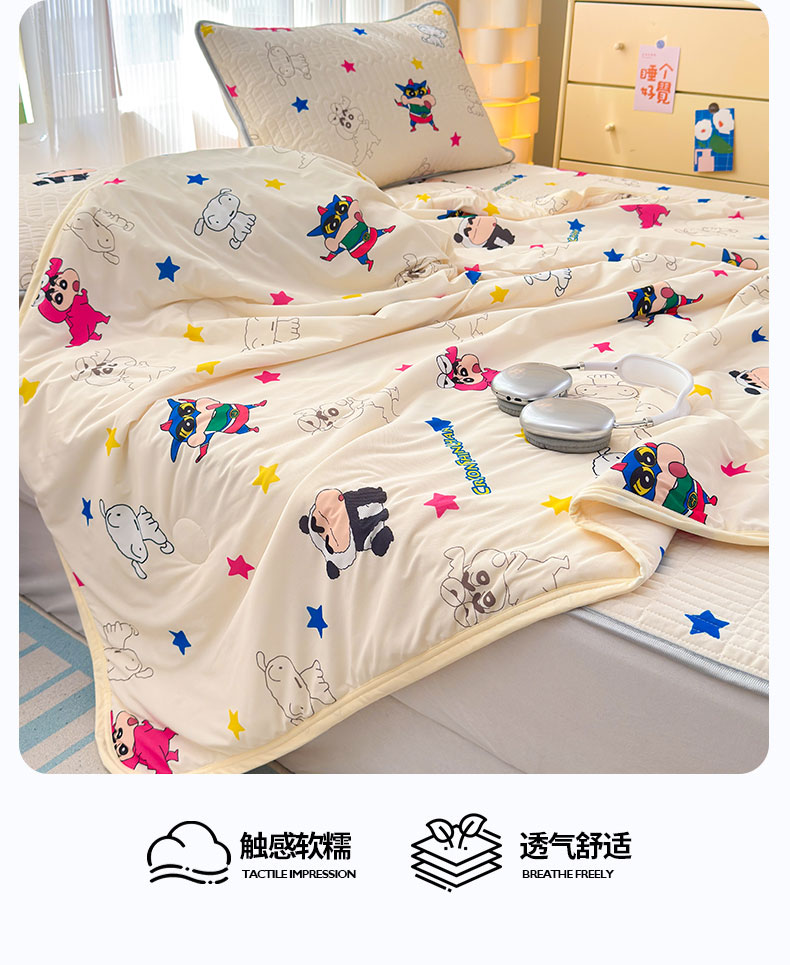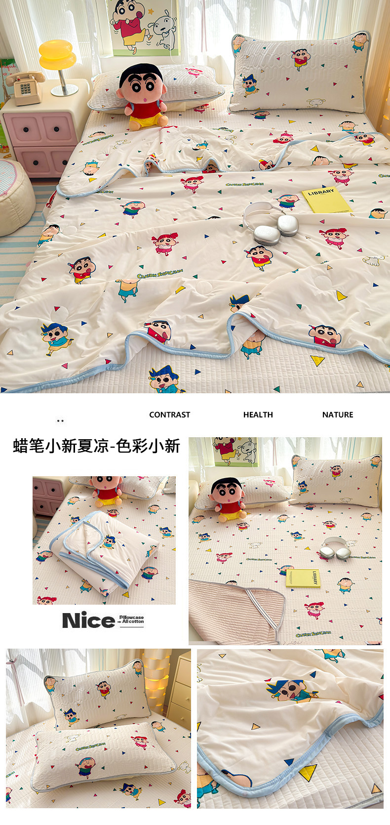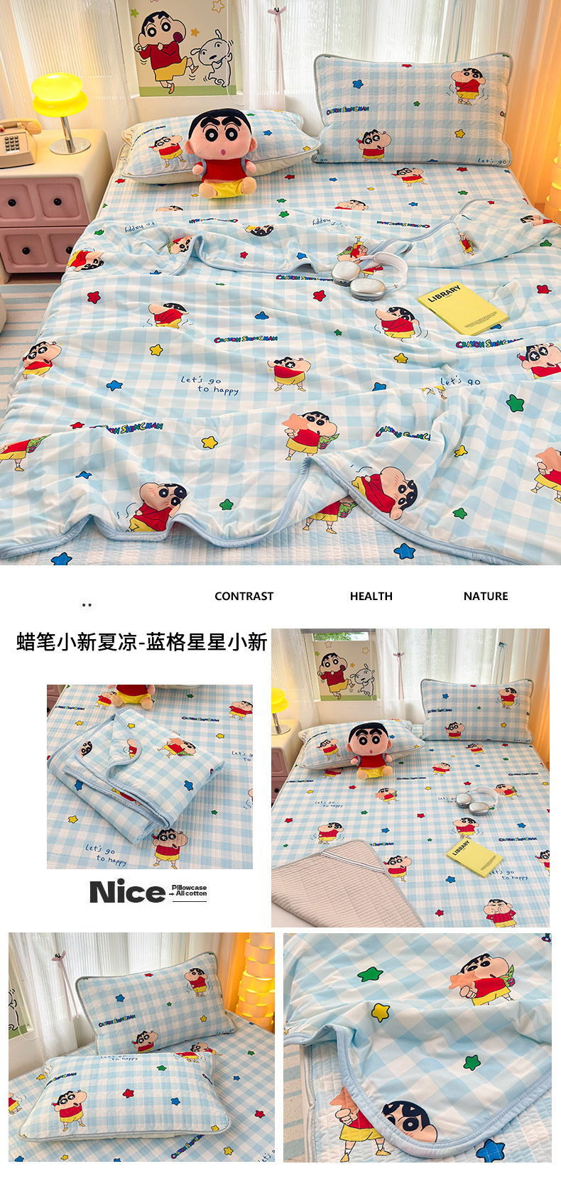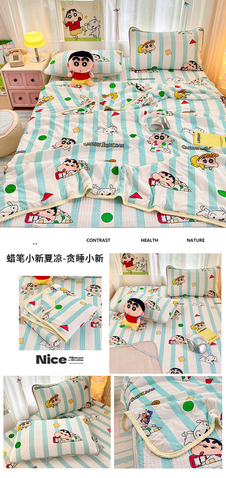 商品名称:(总)桃子家居 2026新款A类蜡笔小新授权数码印花小冰皮仿锦氨凉感凉席夏被组合夏被四件套
